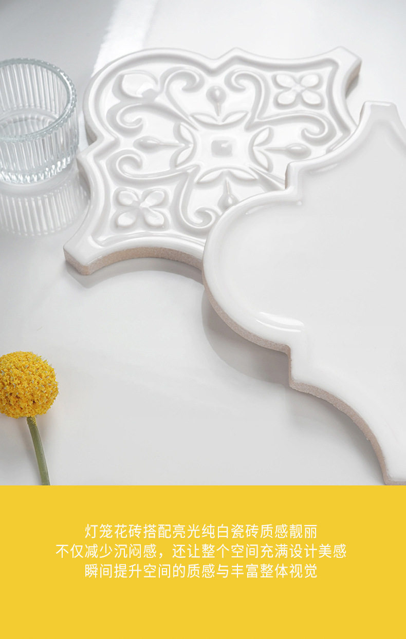 灯笼厨房卫生间法式洗手间厕所花砖瓷砖浴室砖网红纯白色墙砖手工 商品图2