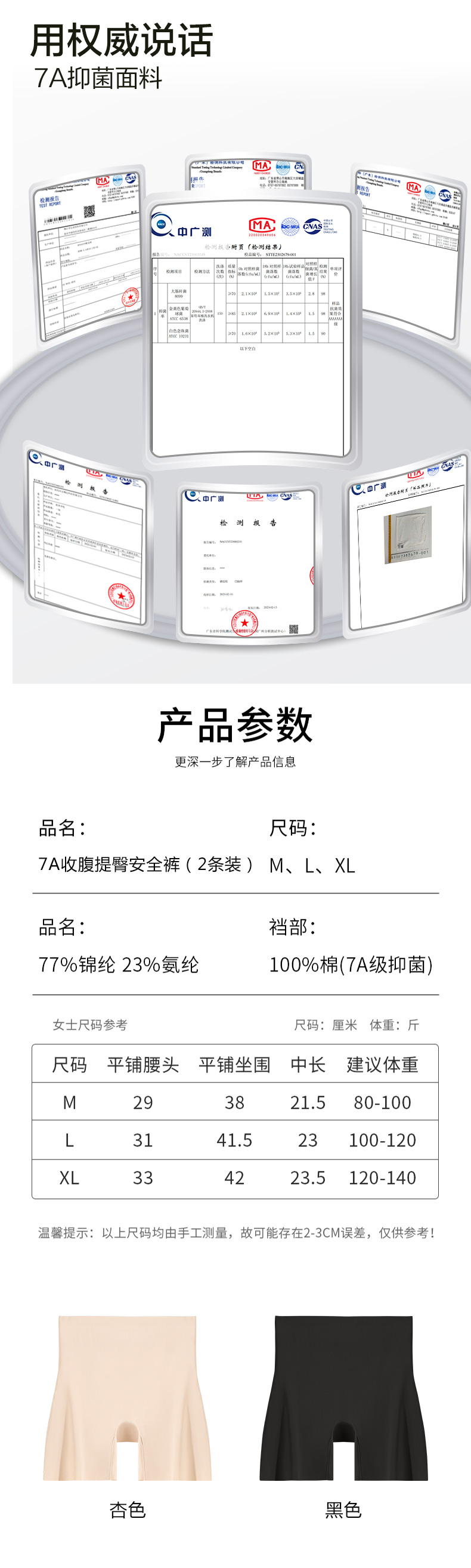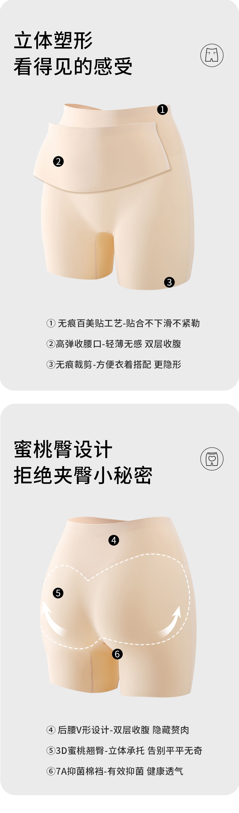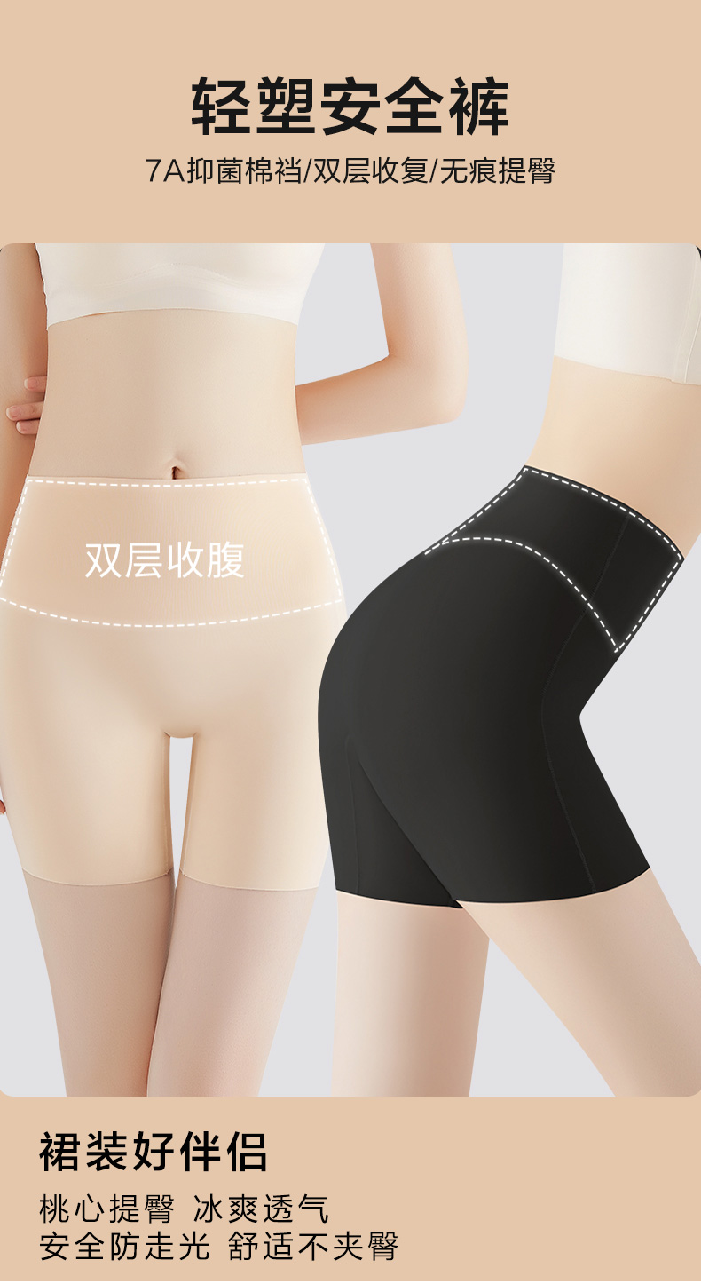 妈生蜜桃翘臀 7A收腹提臀安全裤两条盒装 安全裤/提臀裤/内裤三合一 凉感冰丝面料裙装好伴侣 打底裤