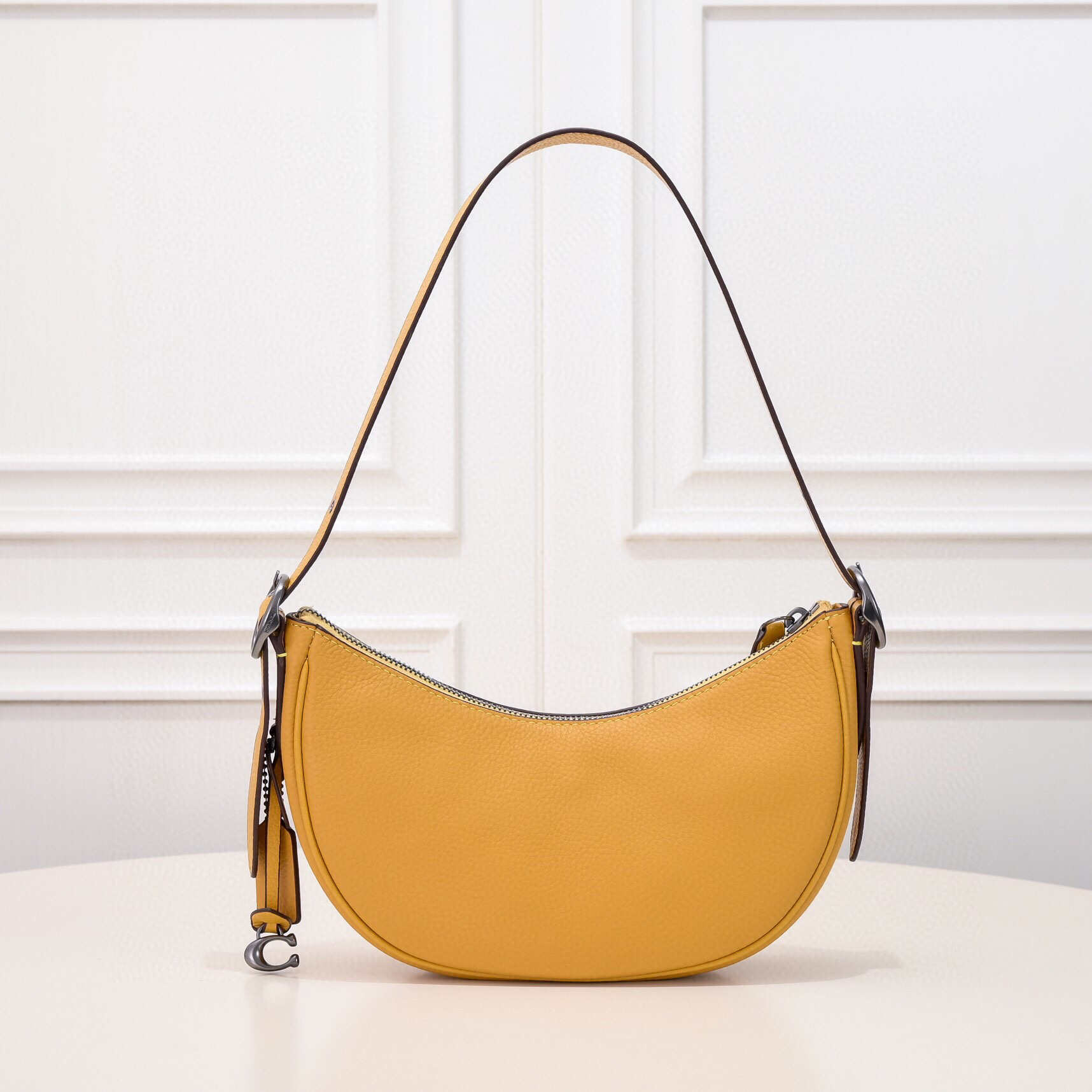 秋季特惠💰450 蔻驰新款女包Luna月牙包豌豆包CC439 荔枝纹头层牛皮
