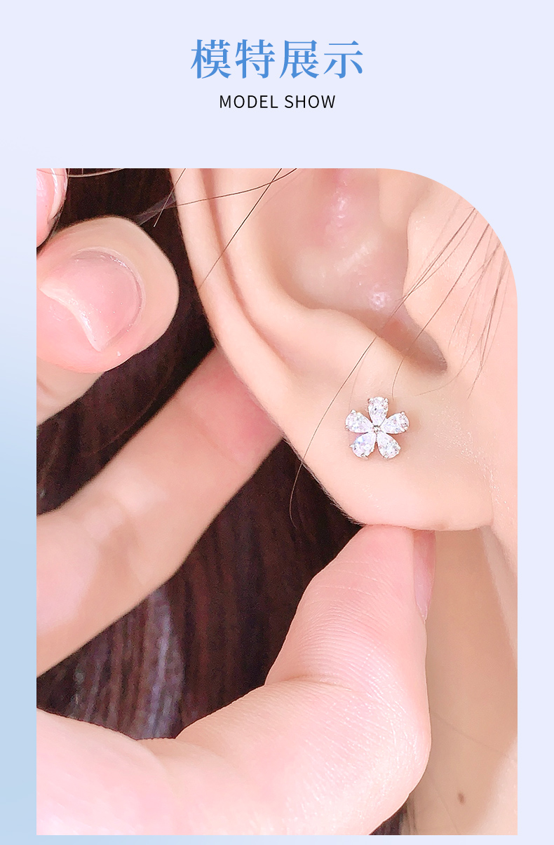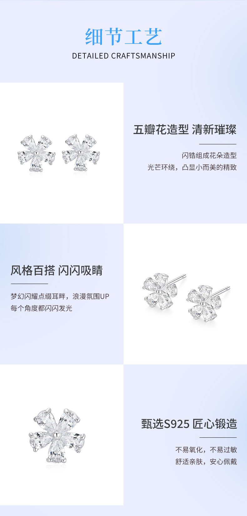 卡蒂罗/KADER 花间浪漫耳钉 甜美五瓣花闪耀璀璨养耳洞耳饰 在逃公主紫藤花清新茉莉配饰 925银 送闺蜜