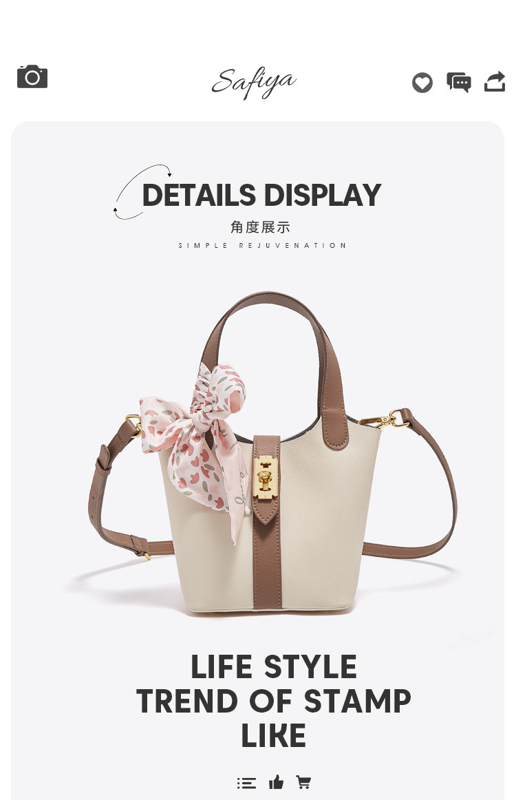 Safiya/索菲娅牛皮2022新款水桶包单肩包包女式斜挎包手提女包SF986003Y