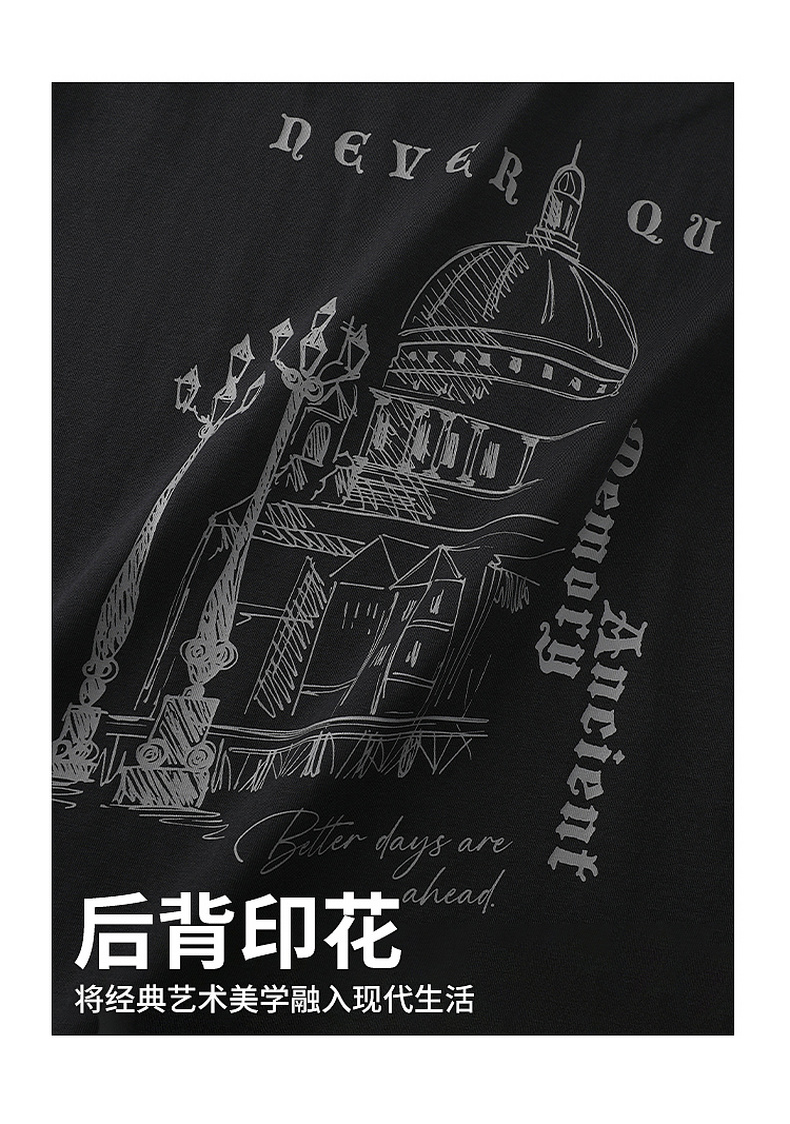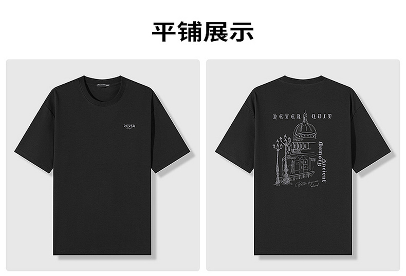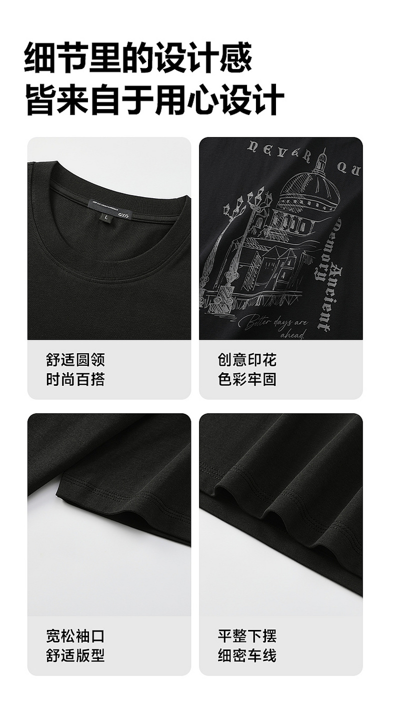 GXG男装【凉感透气】26夏季复古潮流字母建筑圆领休闲男式短袖T恤K&C
