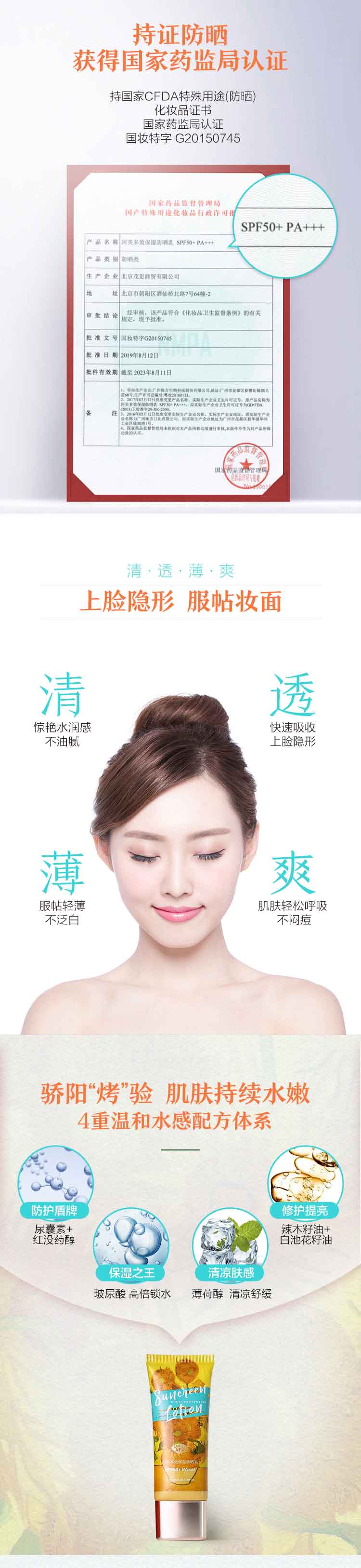 【购物即送精华资格】阿芙保湿防晒乳spf50 防晒隔离霜防晒霜JPY带授权招加盟代理