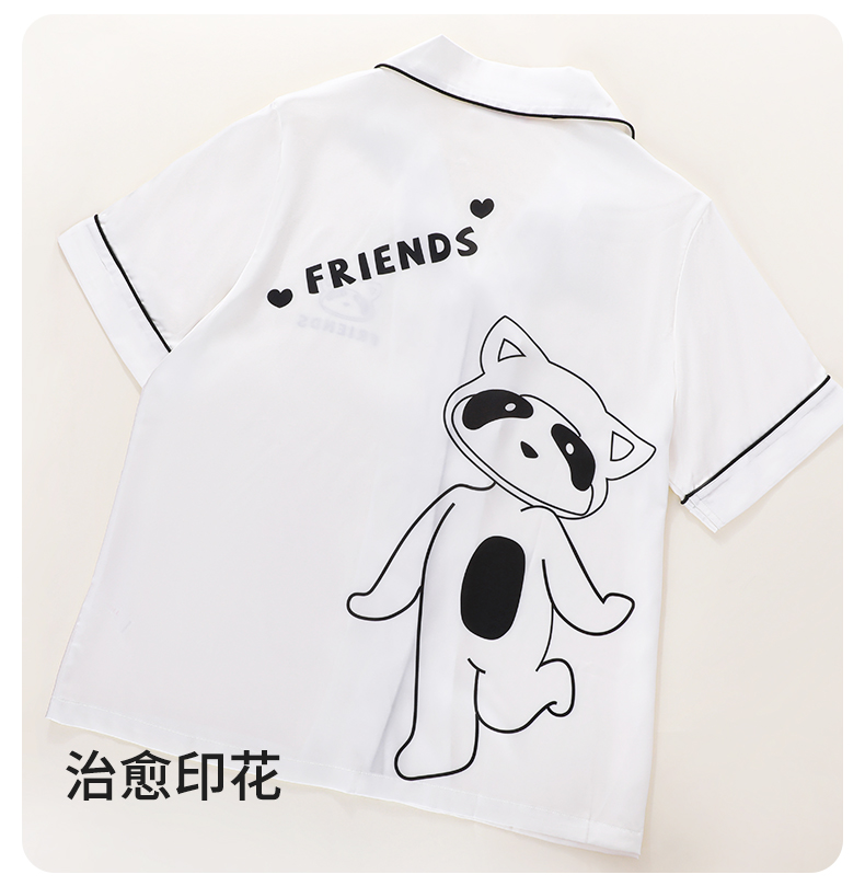 【商场同款】熳洁儿 冰雪丝情侣家居服清凉开衫短袖短裤套装简约时尚24203109/24203909