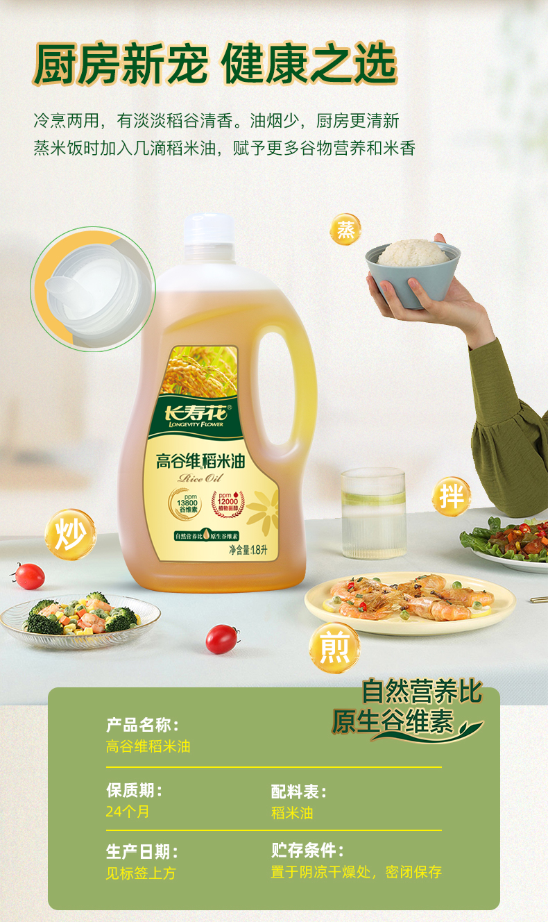 长寿花高谷维稻米油1.8L食用油小瓶装米糠油健康食用油清香植物油