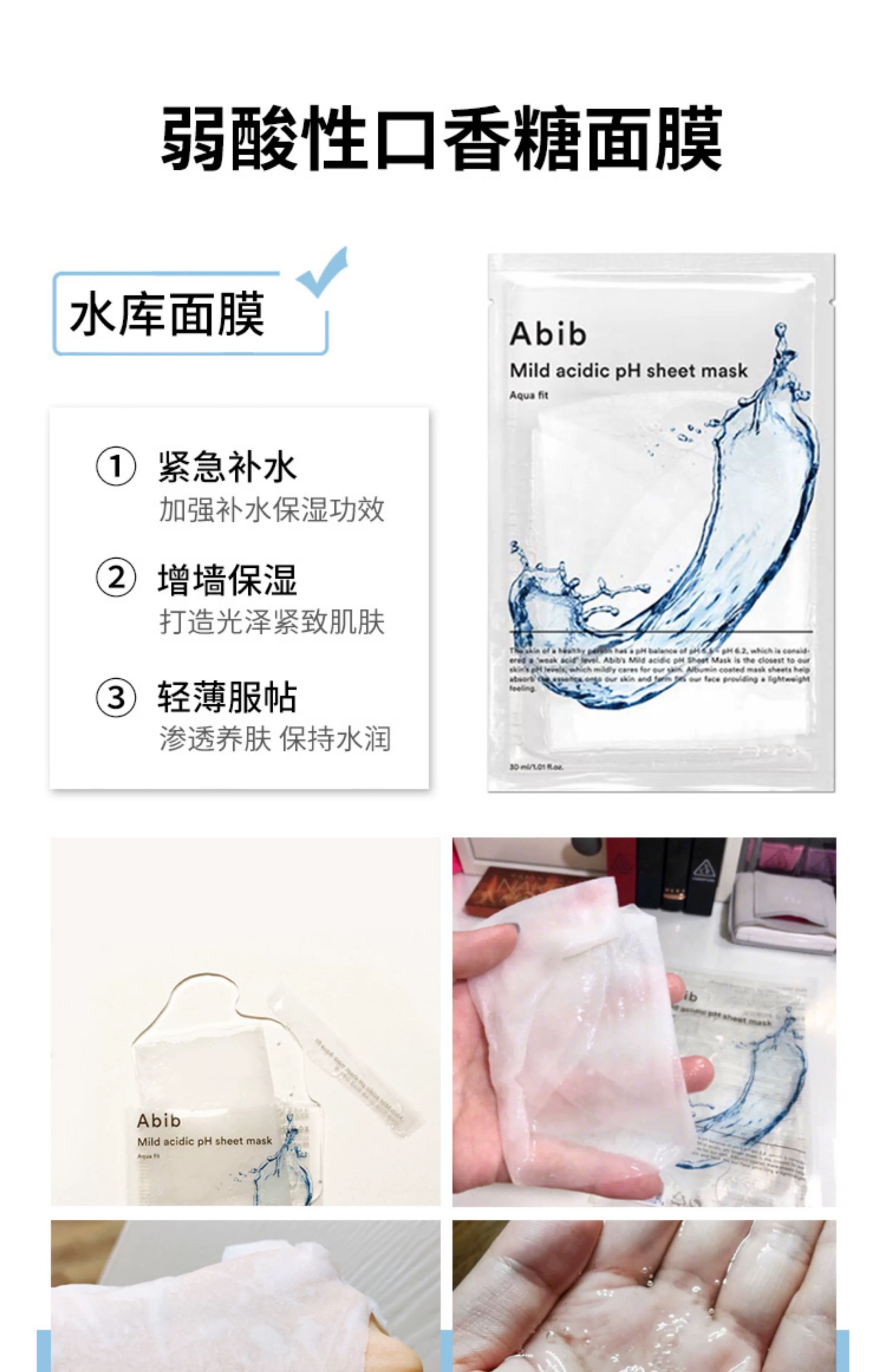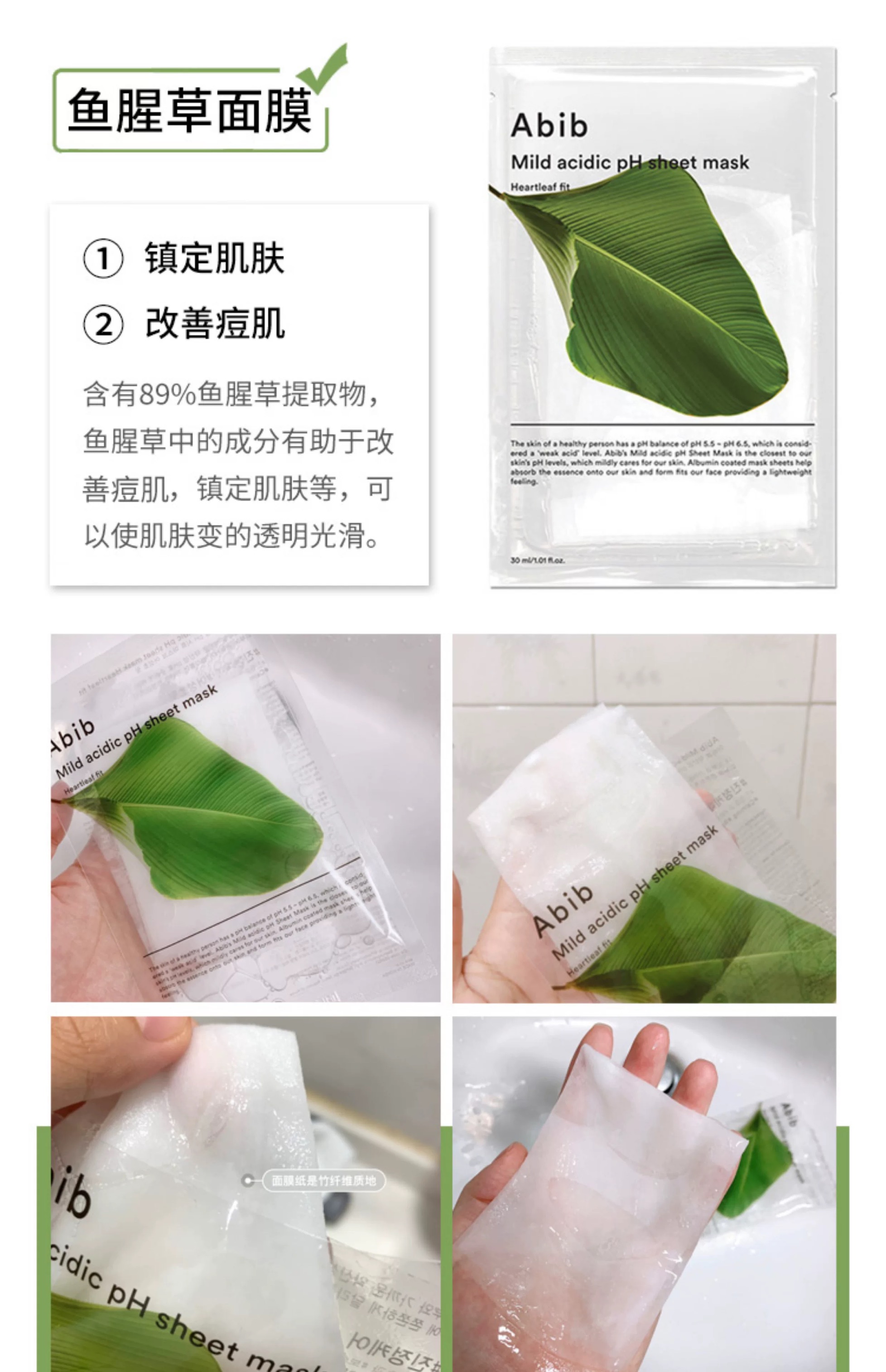 韩国Abib面膜PH弱酸鱼腥草水库复活草蜂蜜补水积雪草滋润舒缓保湿淡斑