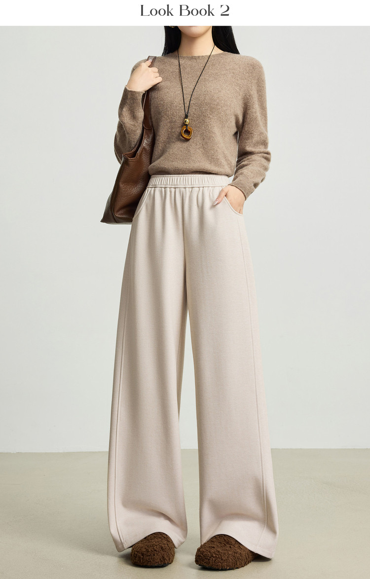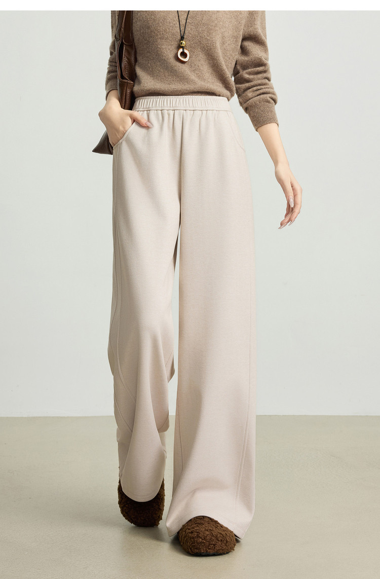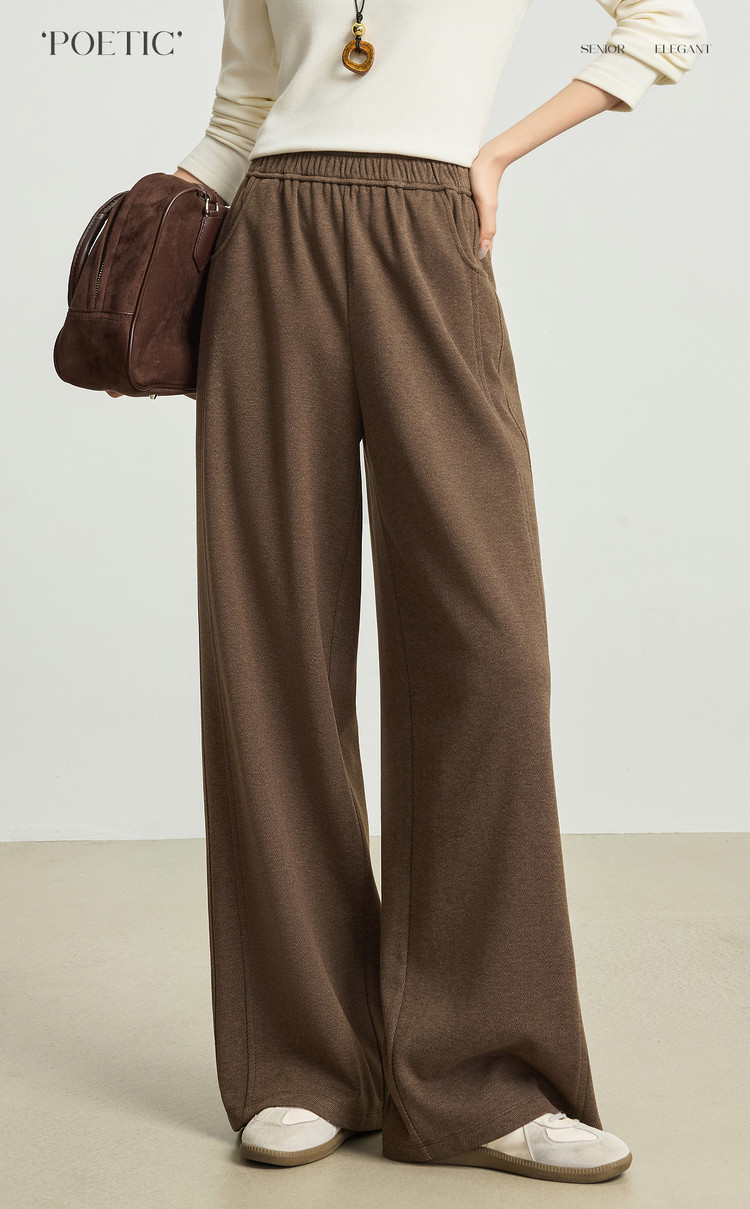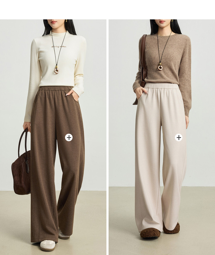 【12/24新品6.5折】熙世界宽松慵懒毛呢阔腿裤女秋冬加厚高腰显瘦休闲窄版直筒长裤子