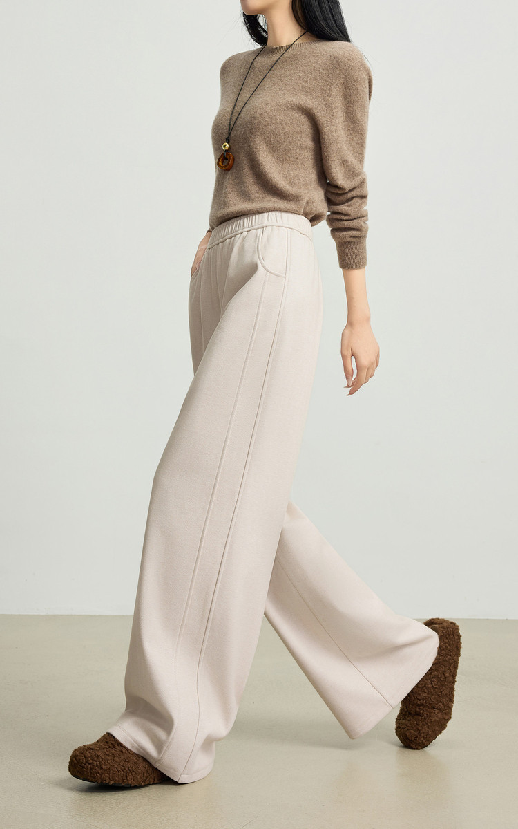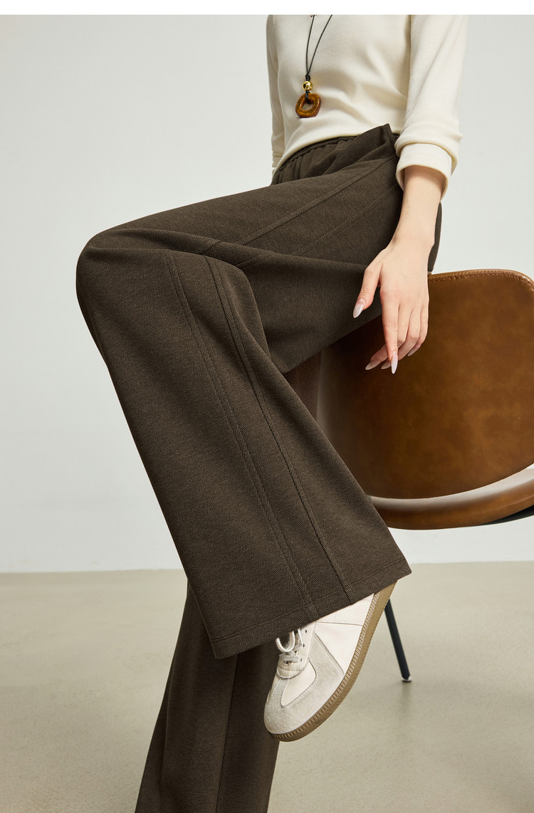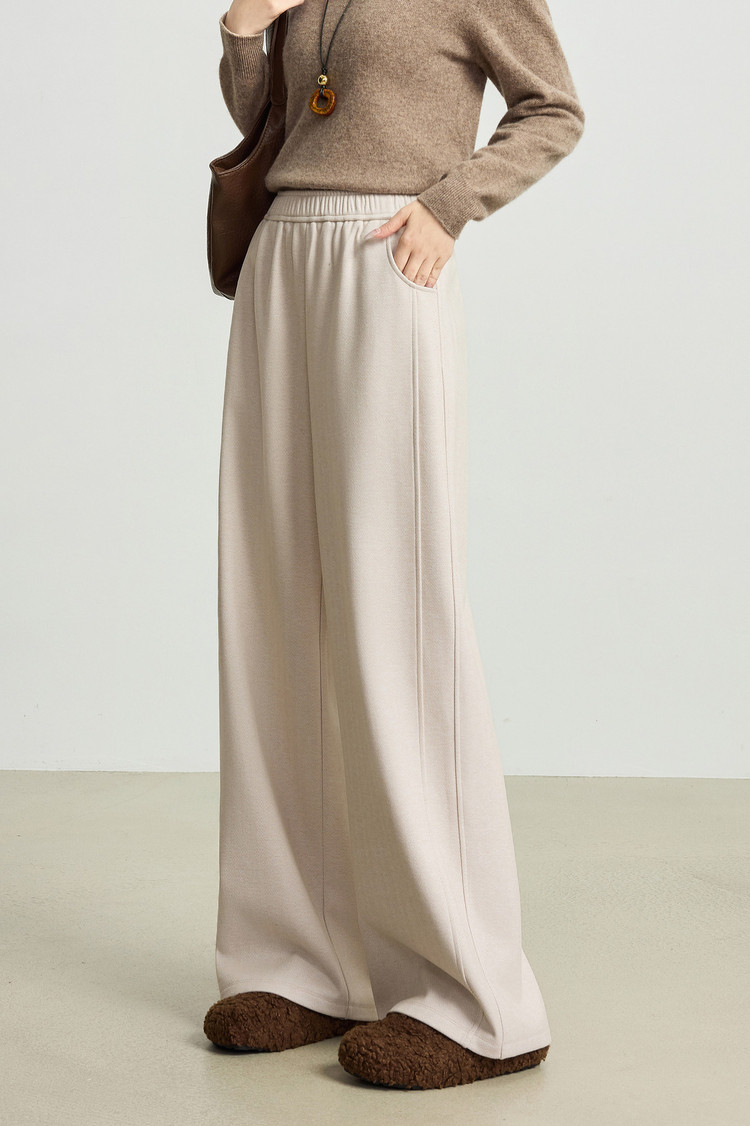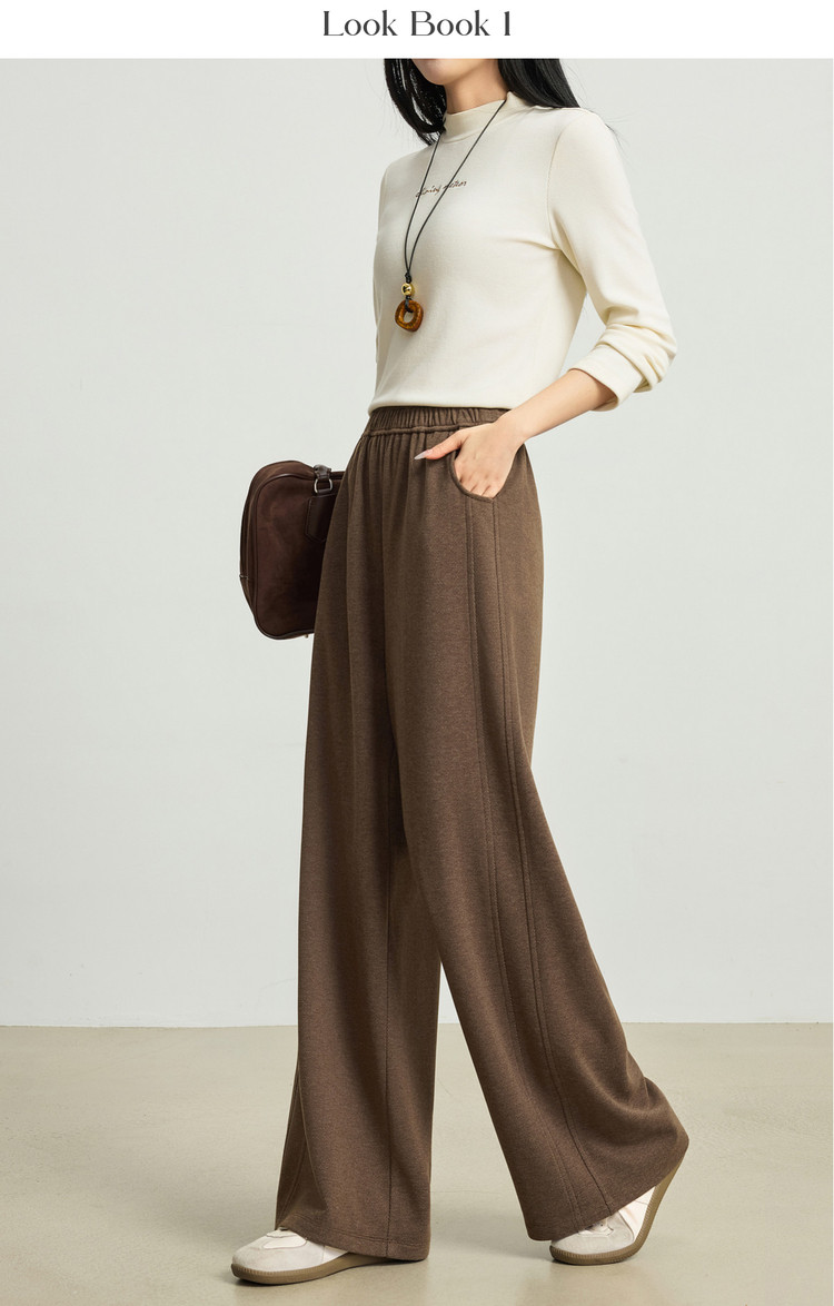 【12/24新品6.5折】熙世界宽松慵懒毛呢阔腿裤女秋冬加厚高腰显瘦休闲窄版直筒长裤子