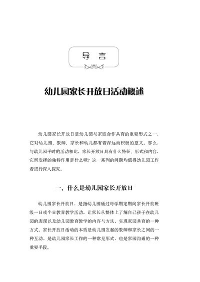 导 言 幼儿园家长开放日活动概述