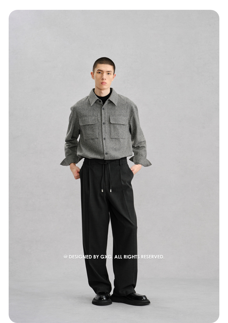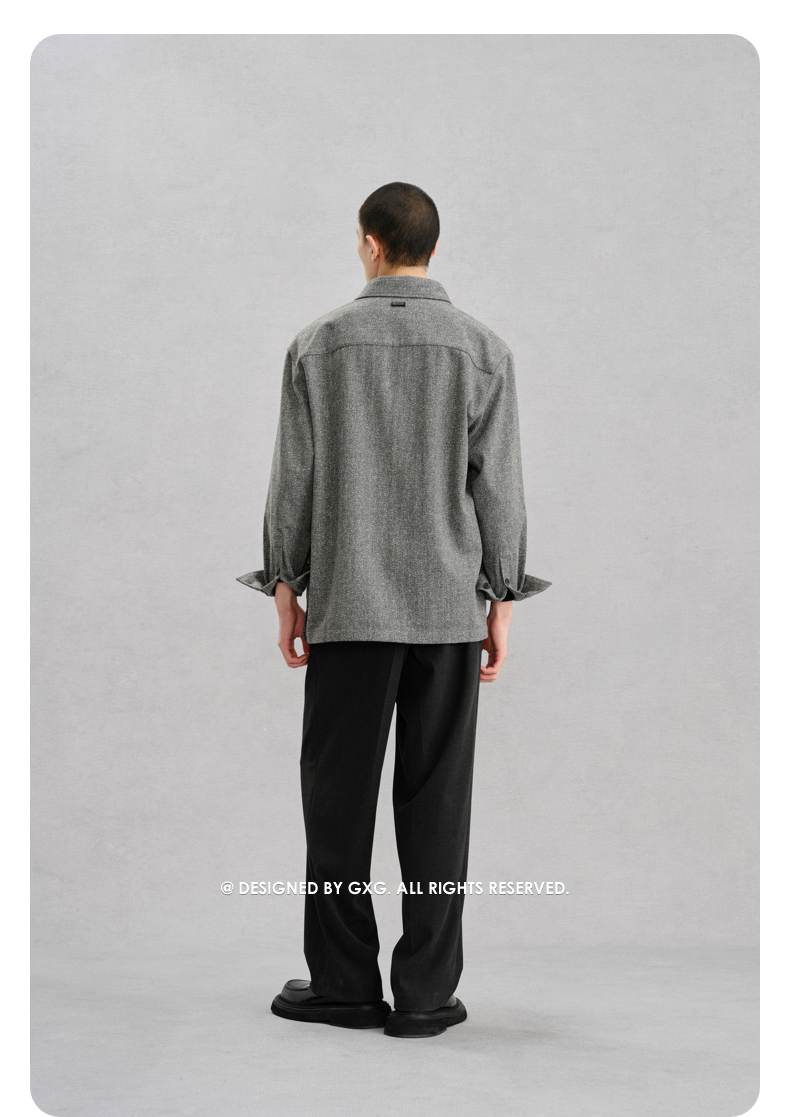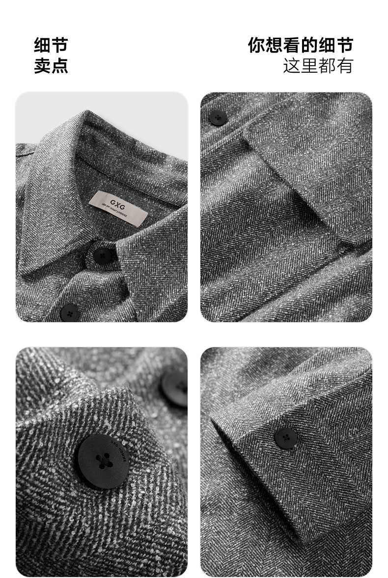 GXG男装 深麻灰都市休闲长袖衬衫24年冬季热卖G24X034063