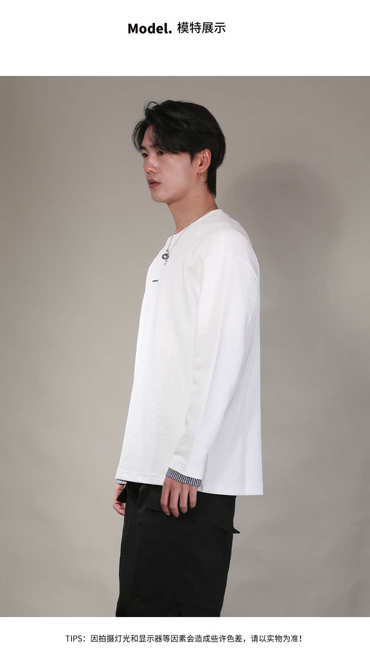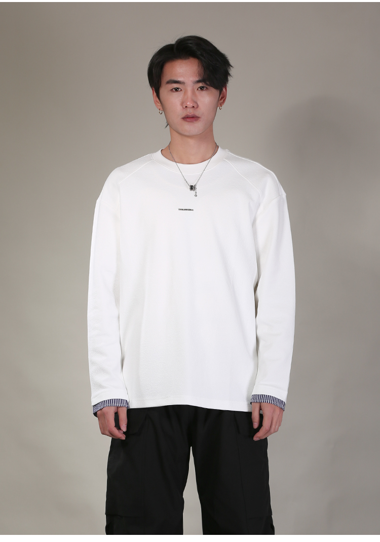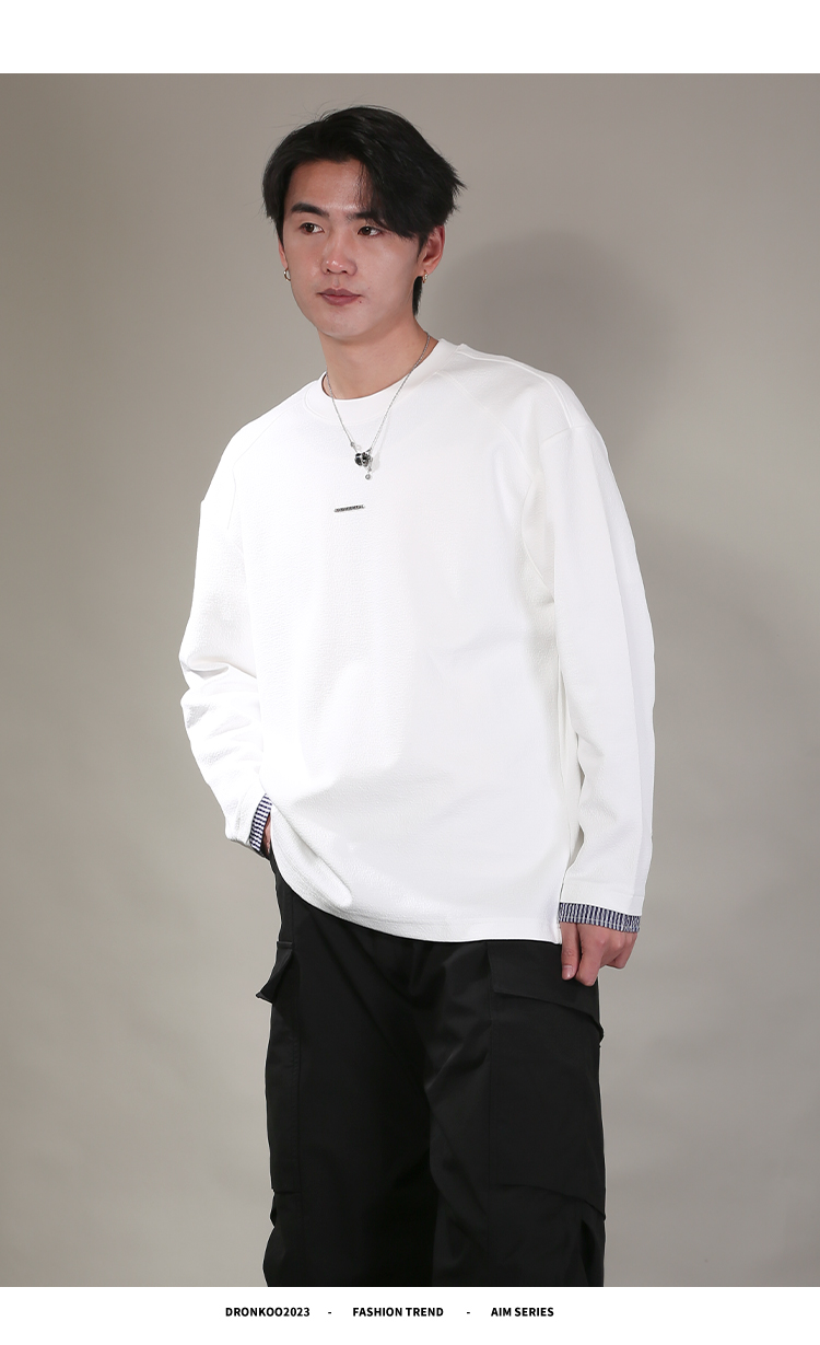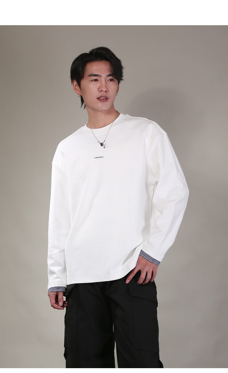 DRONKOO 2026 圆领前金属字母标袖口撞格薄卫衣