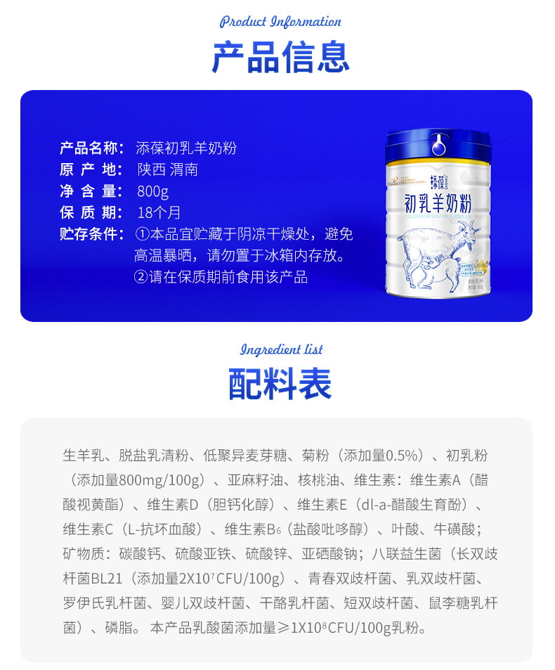 添葆初乳羊奶粉800g