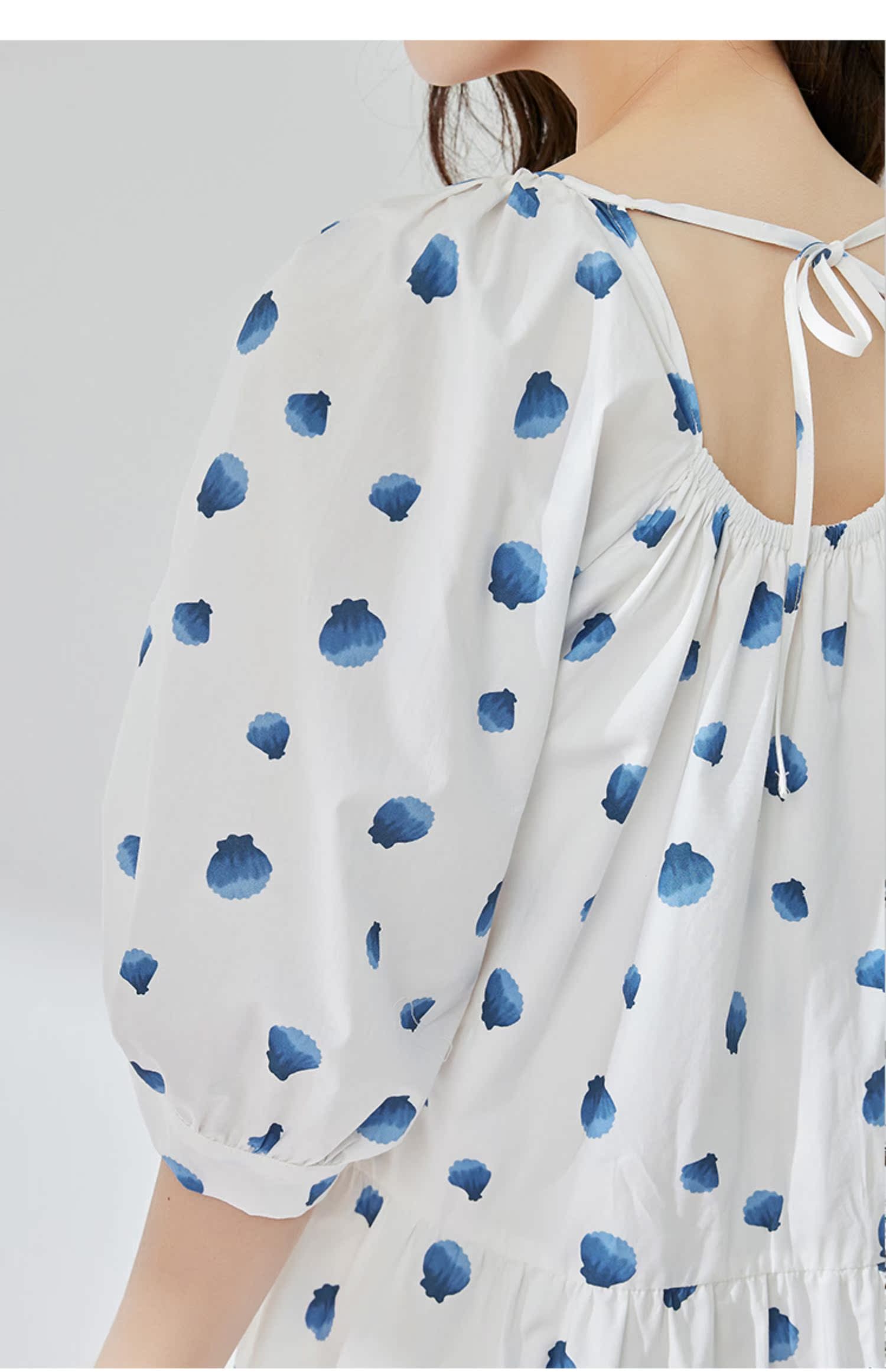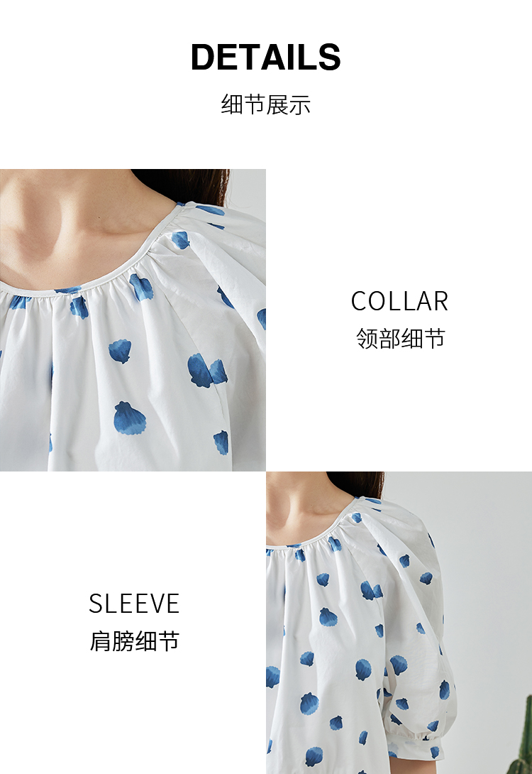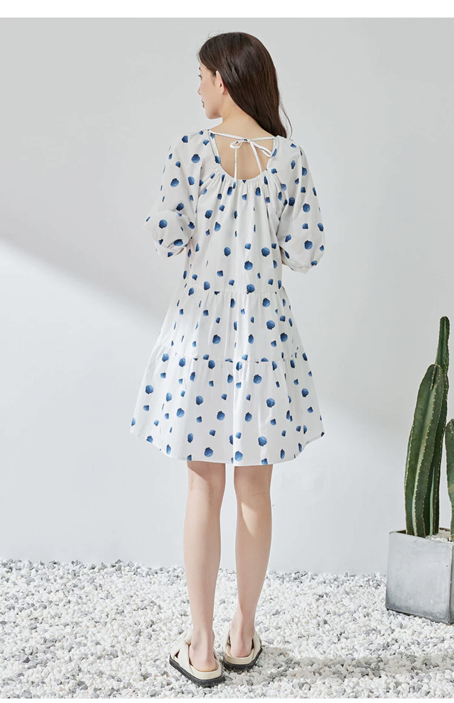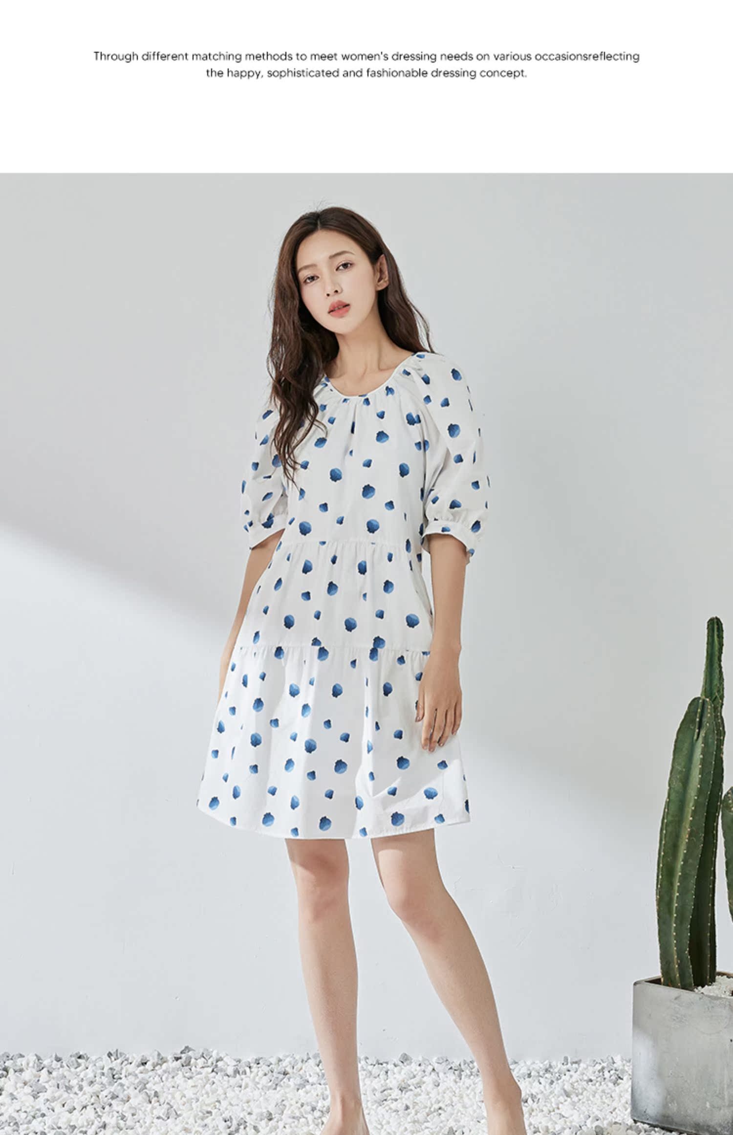 NUTS夏季新款气质圆领泡泡袖高腰显瘦圆点连衣裙324101175B