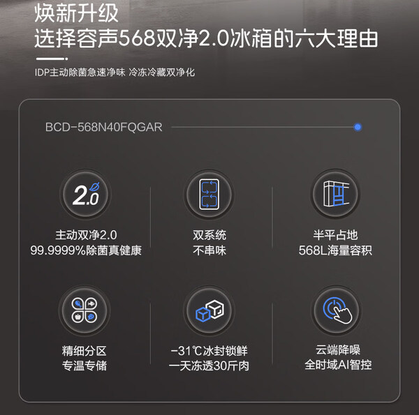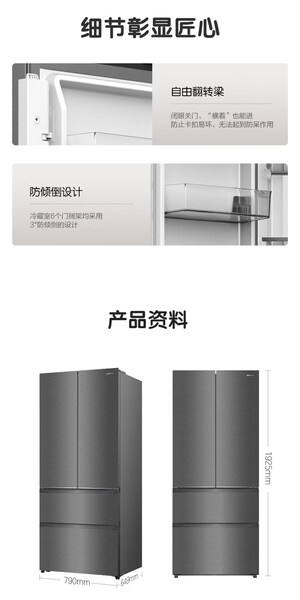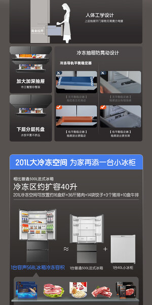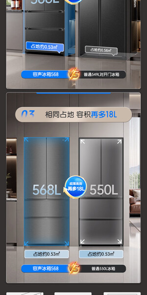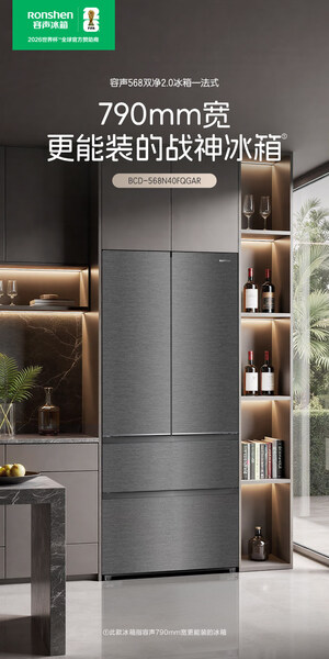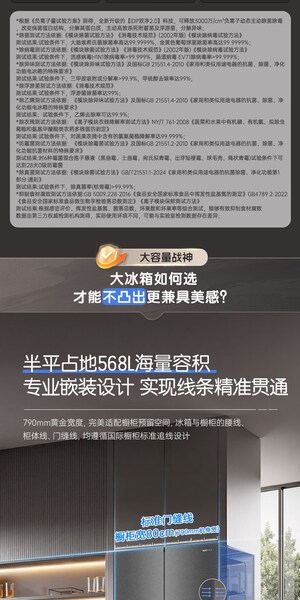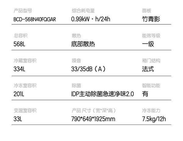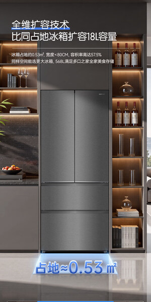容声 冰箱 568N40FQGAR 568升 嵌入式 法式多门 风冷 变频 一级能效 底部散热 竹青影
