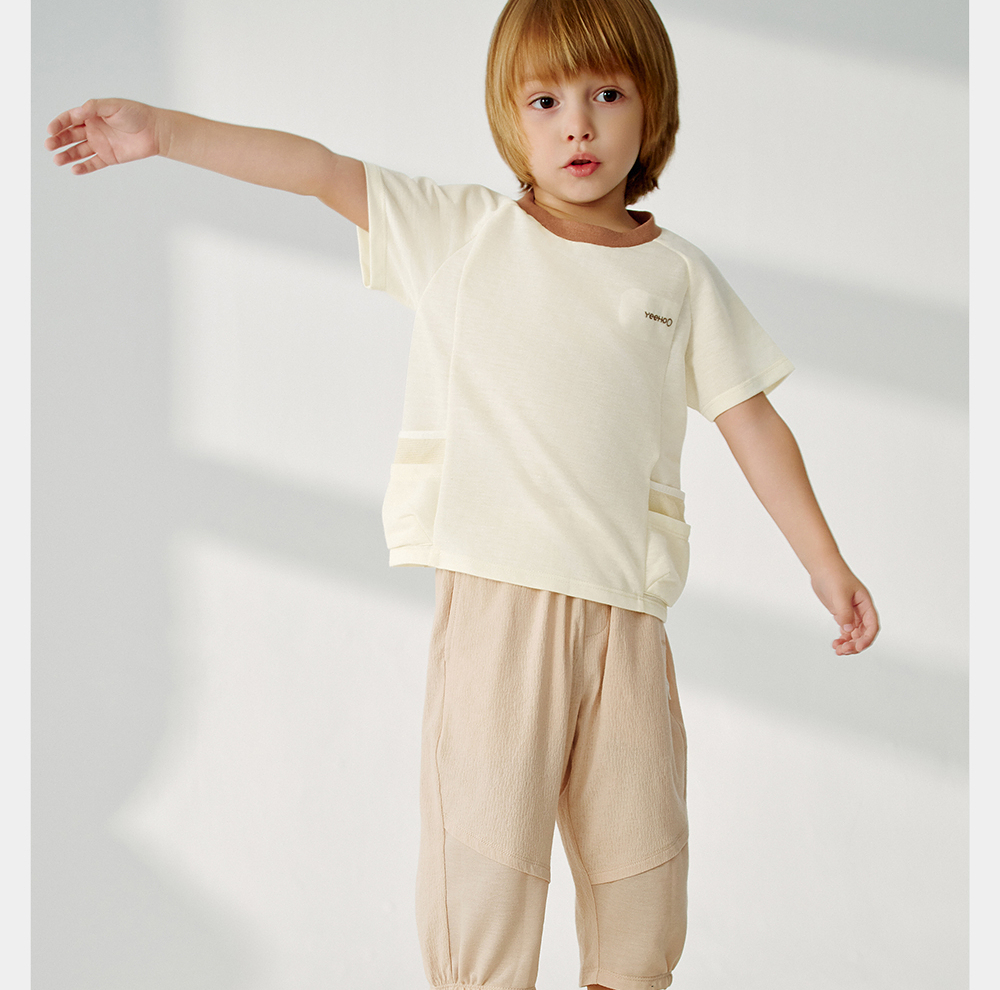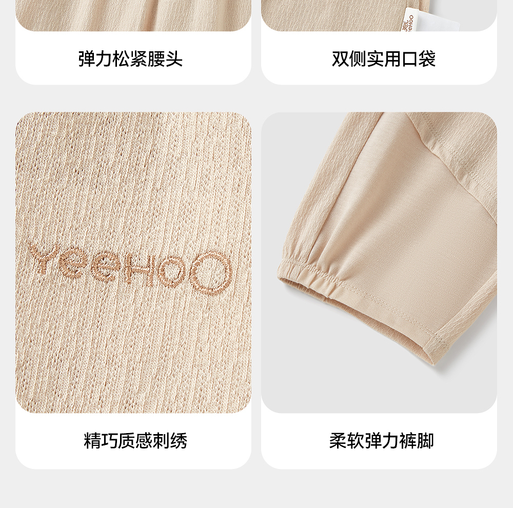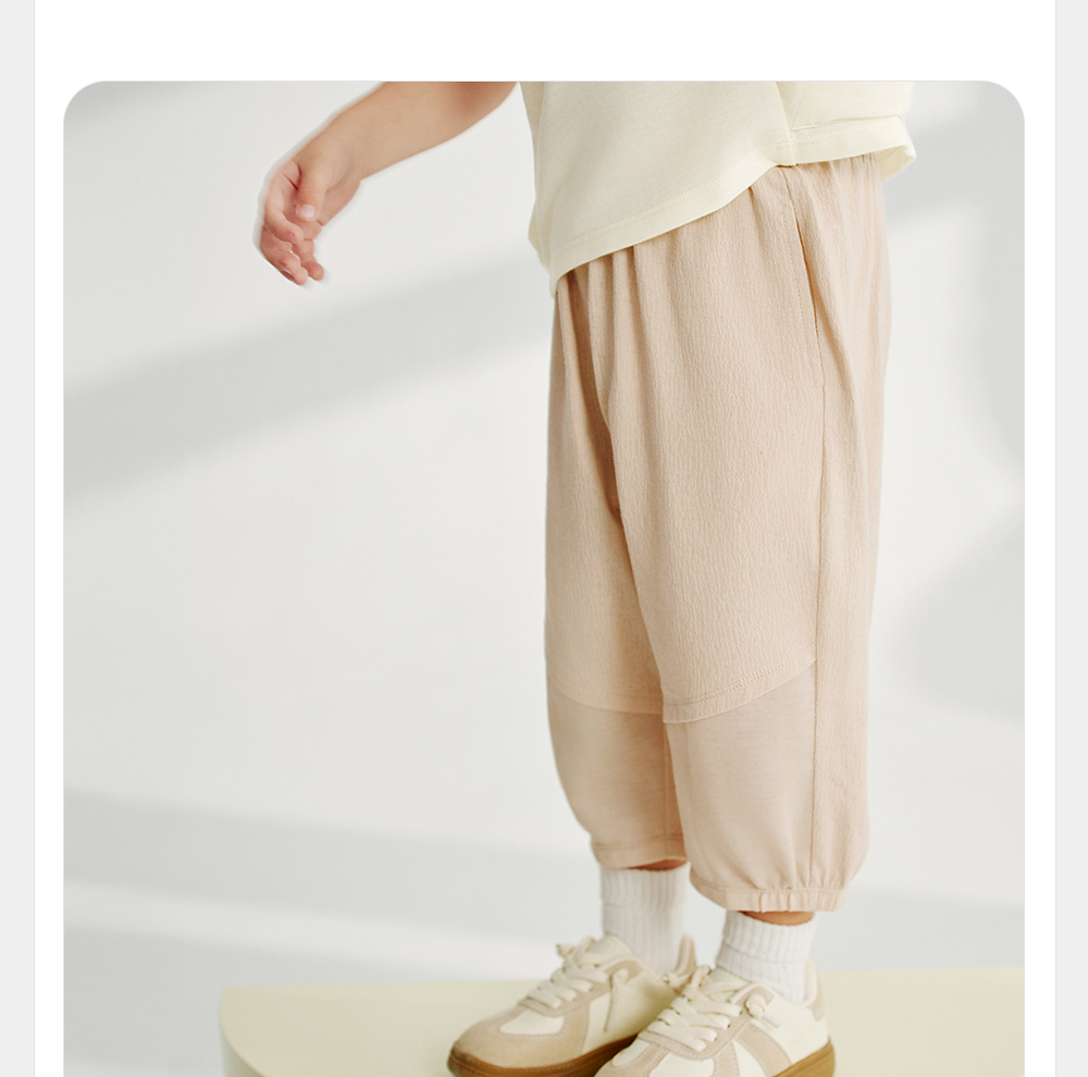 英氏儿童裤子夏季宽松透气七分裤2025新款男童针织裤YRKZJ2R061A