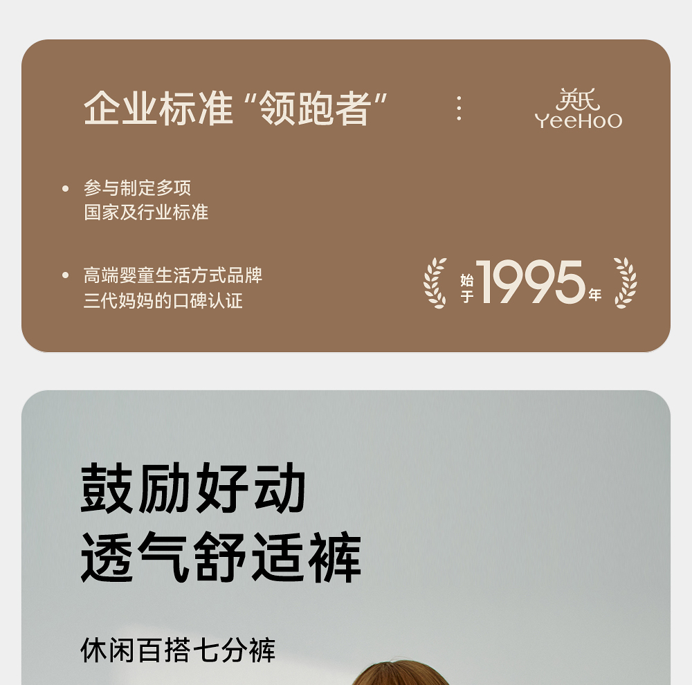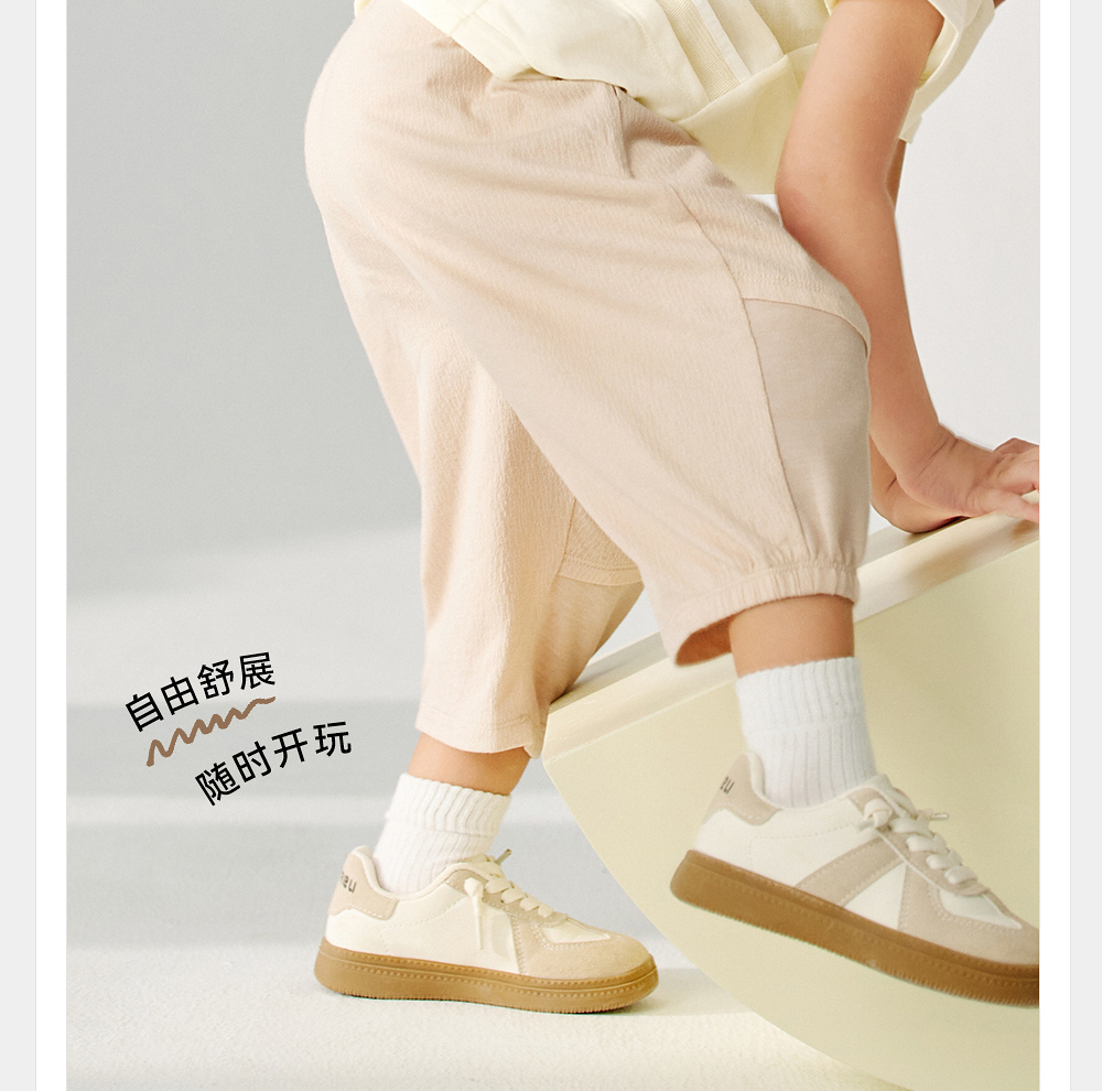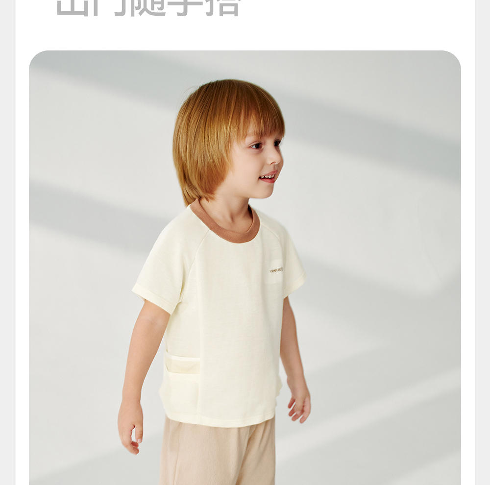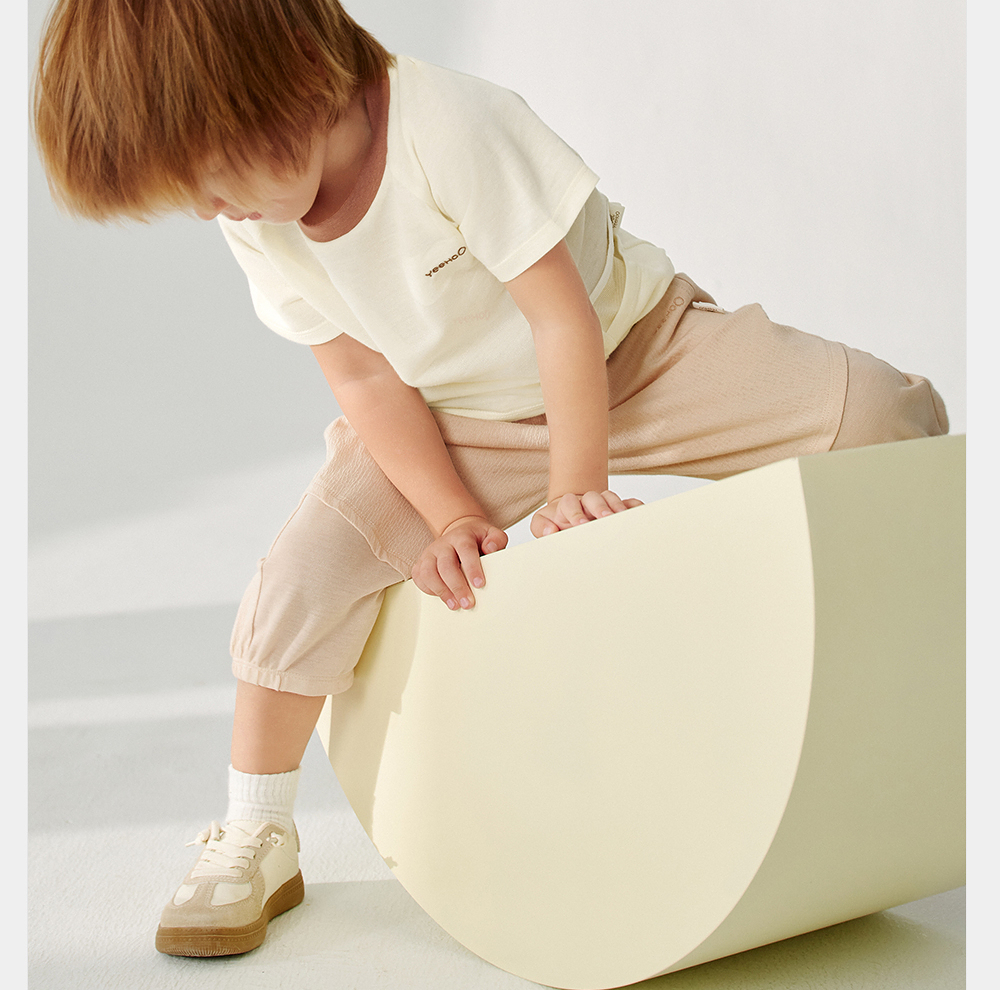 英氏儿童裤子夏季宽松透气七分裤2025新款男童针织裤YRKZJ2R061A