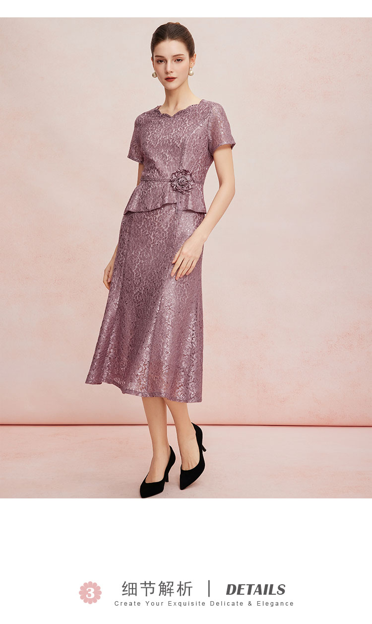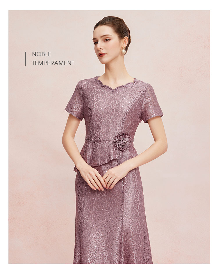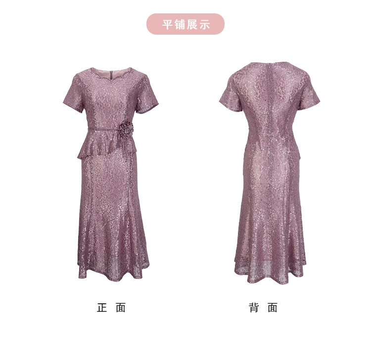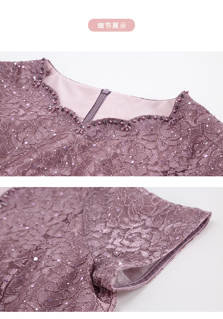 QF8C5斯尔丽25新款宴会华丽礼服立体盘花假两件刺绣蕾丝温柔端庄连衣裙