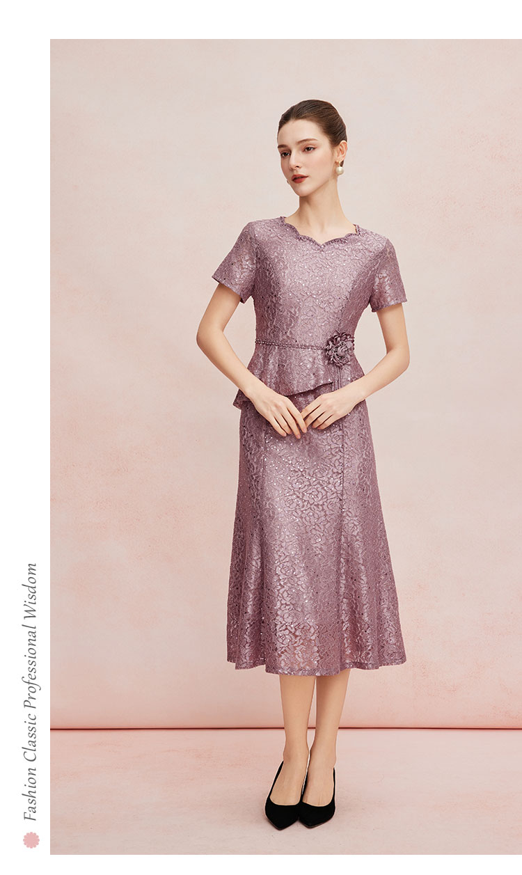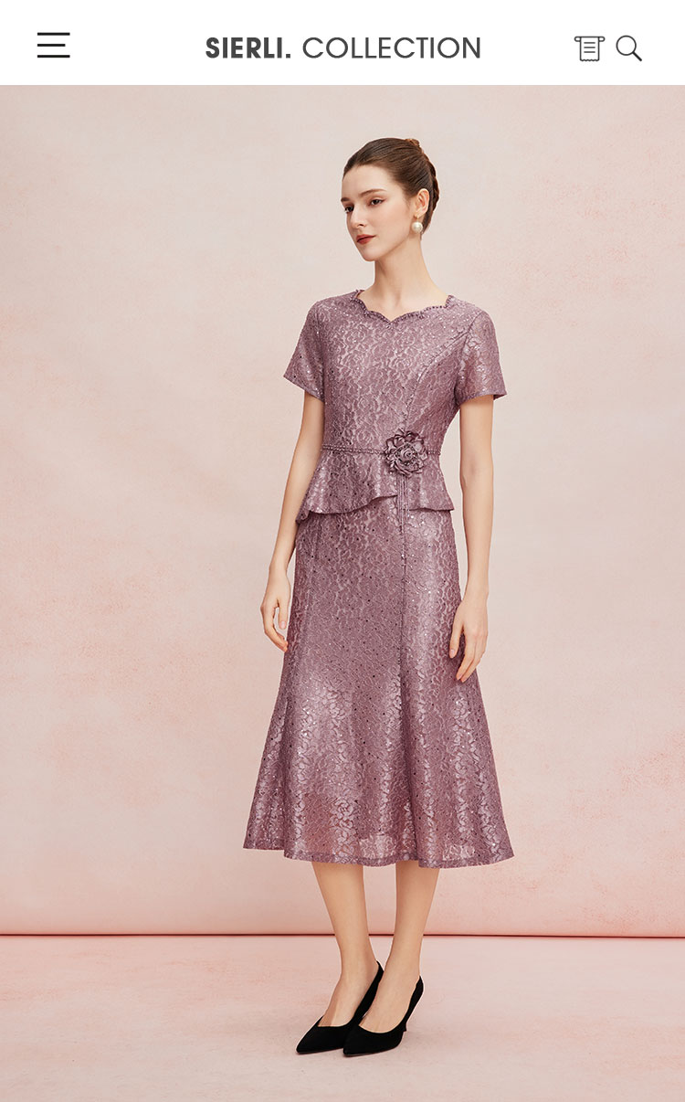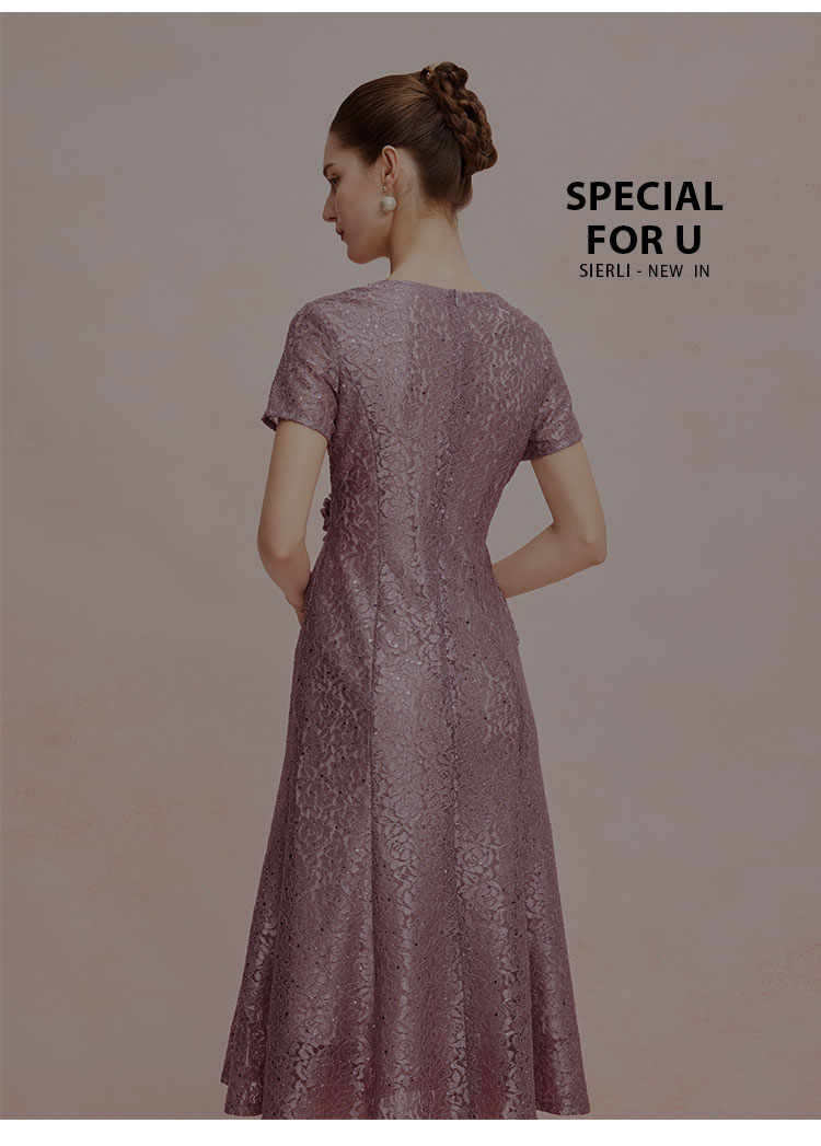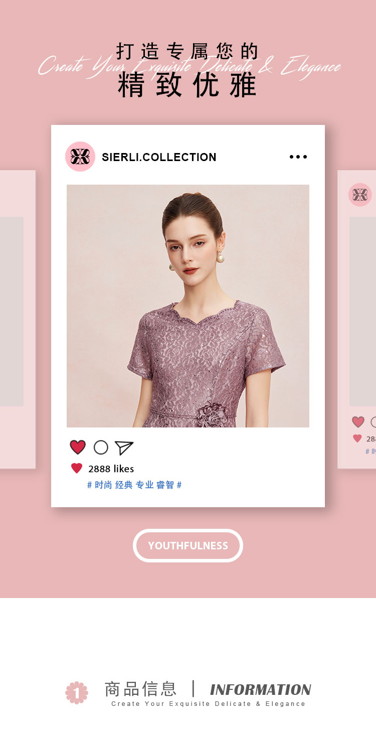 QF8C5斯尔丽25新款宴会华丽礼服立体盘花假两件刺绣蕾丝温柔端庄连衣裙