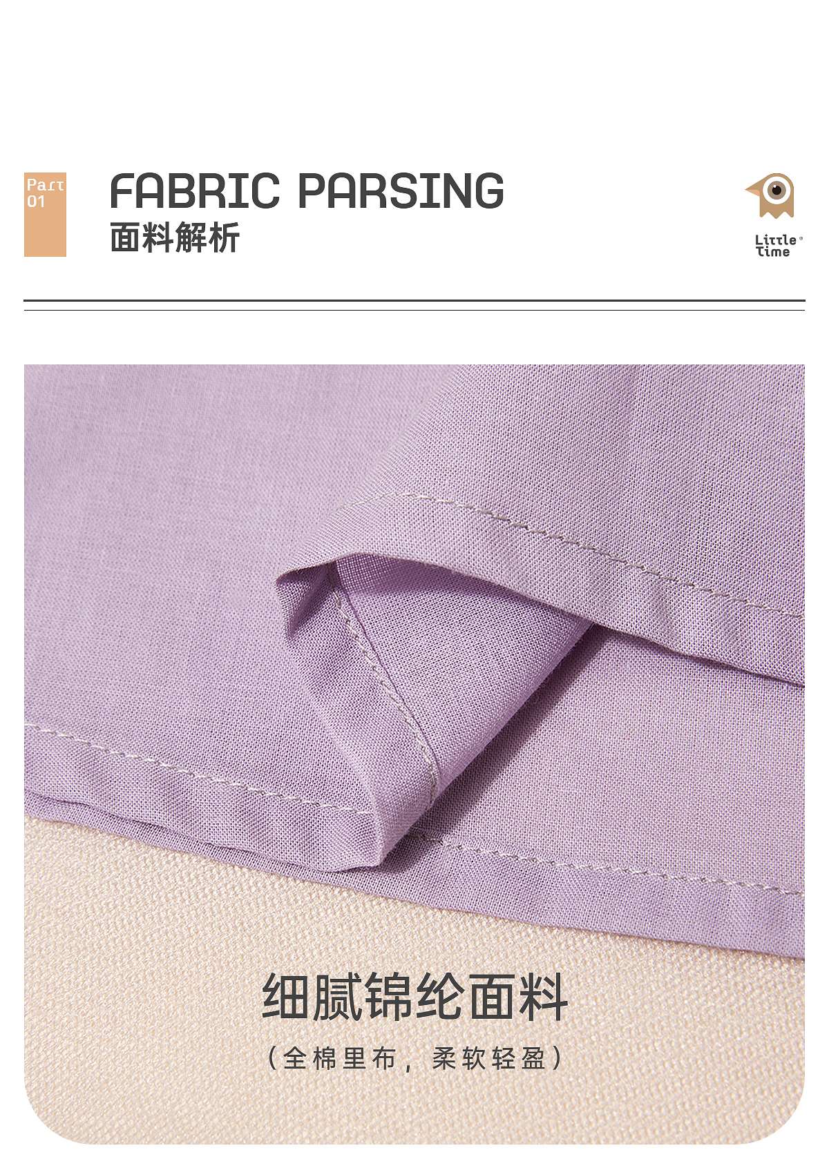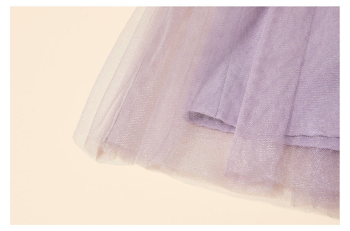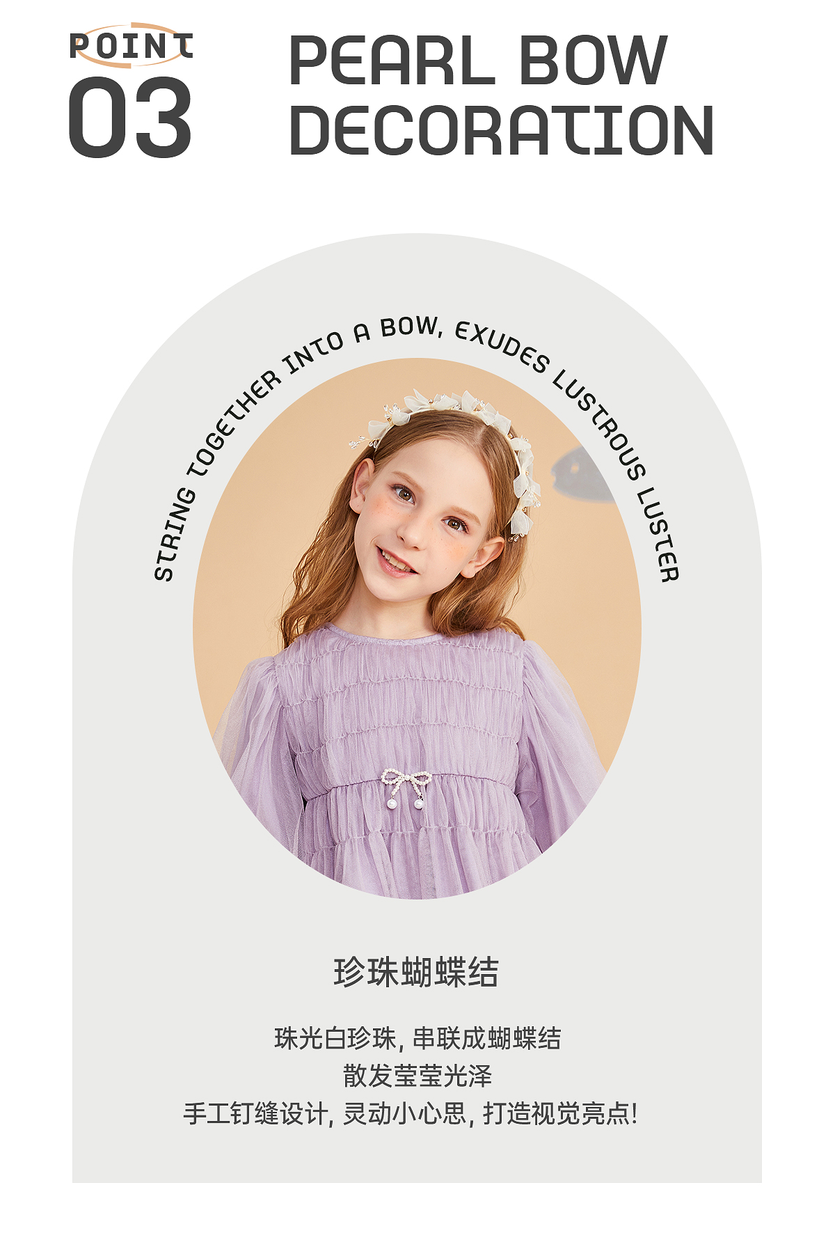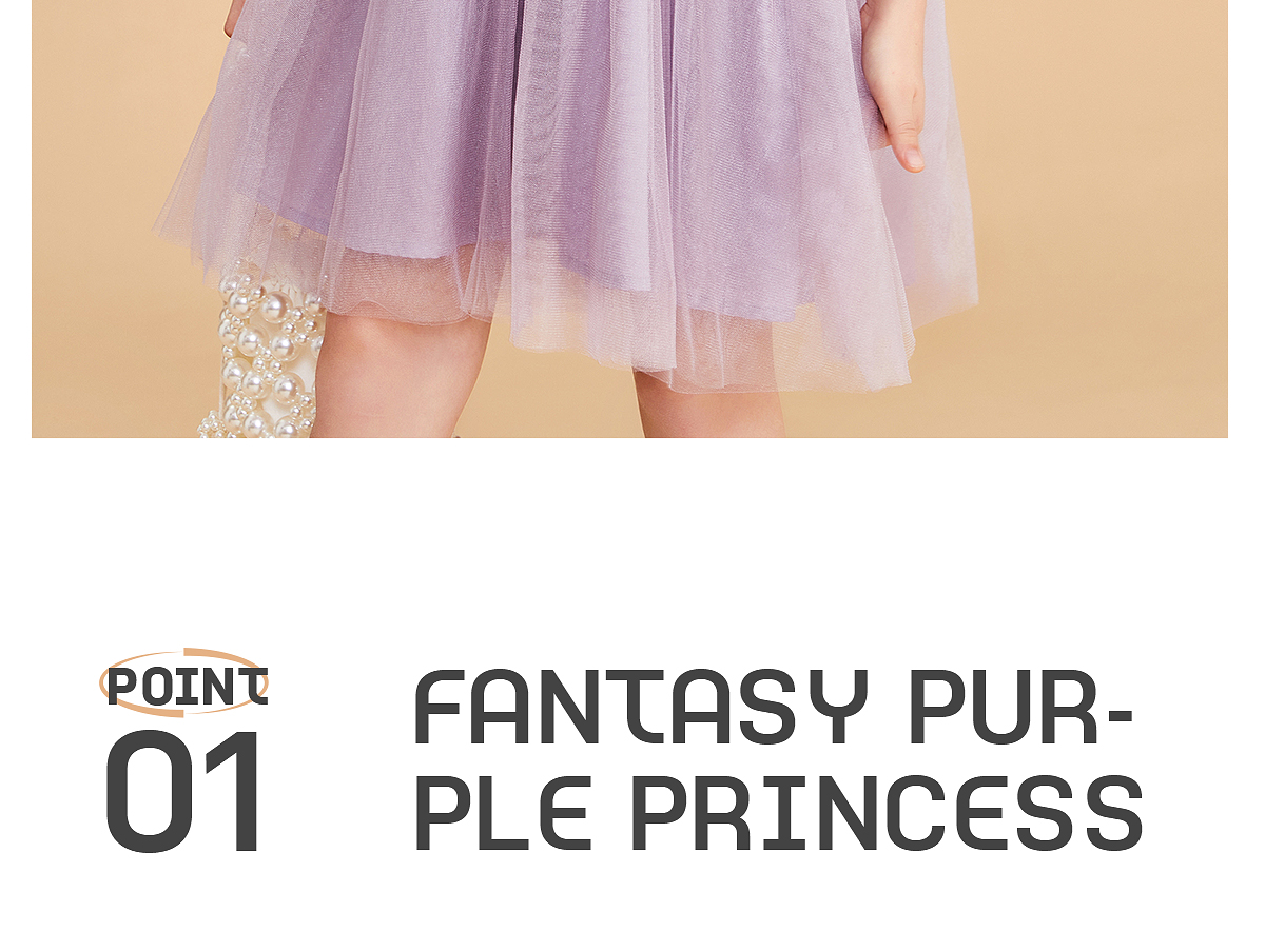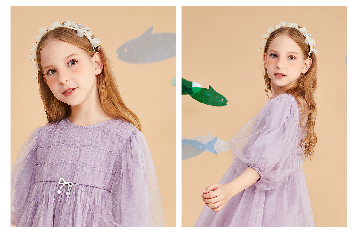 littletime儿童超仙紫色七分袖网纱公主裙春夏新款女童连衣裙