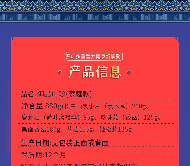 燕之坊 南北干货 御品山珍礼盒880g 黑木耳鹿茸菇珍珠菇姬松茸企业团购