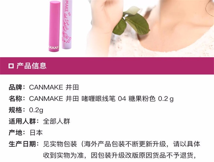 【保税仓】CANMAKE/井田 啫喱眼线笔 #04 糖果粉色 0.2g