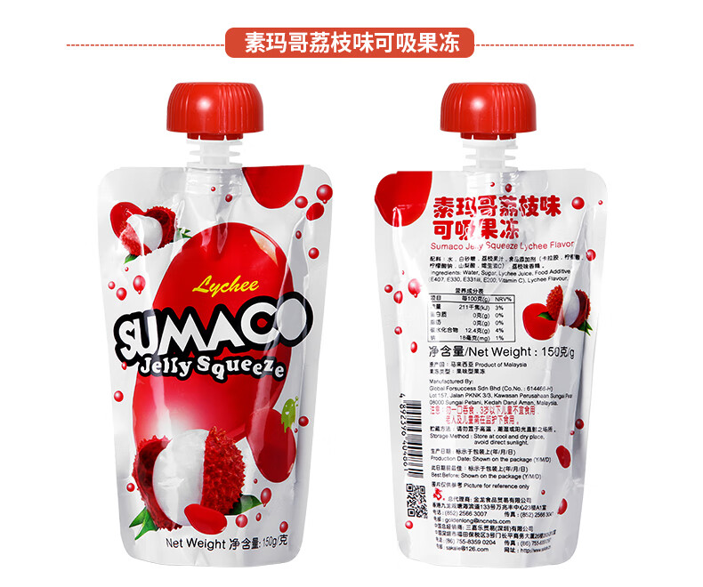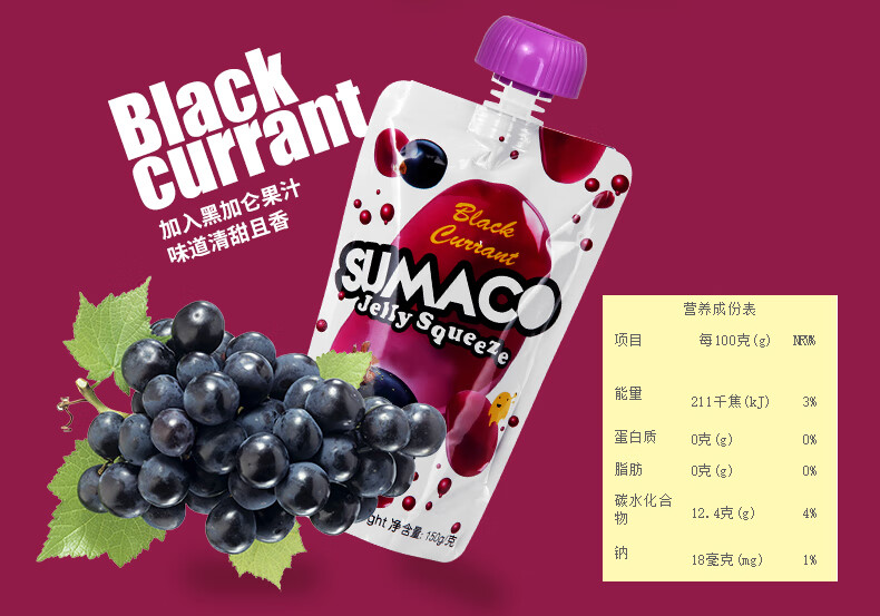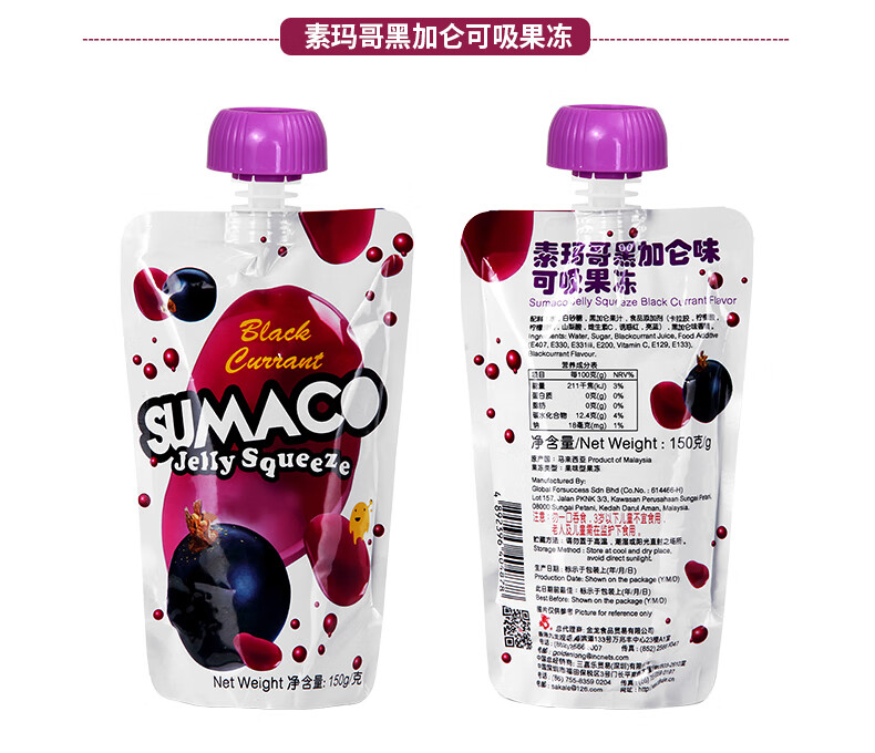 素玛哥芒果味/荔枝味/黑加仑味可吸果冻150g Q弹爽滑果味十足 020071-1/020071-2/020071-3