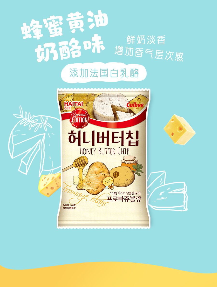 海太蜂蜜黄油奶酪味薯片60g/150776 好薄好脆鲜奶淡香