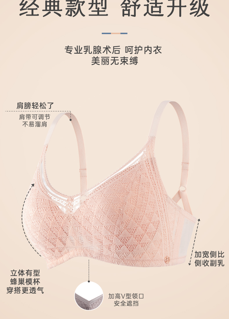 【爱慕】【清爽小几何】爱慕义乳超薄透气文胸乳腺术后透气小码软支撑小几何