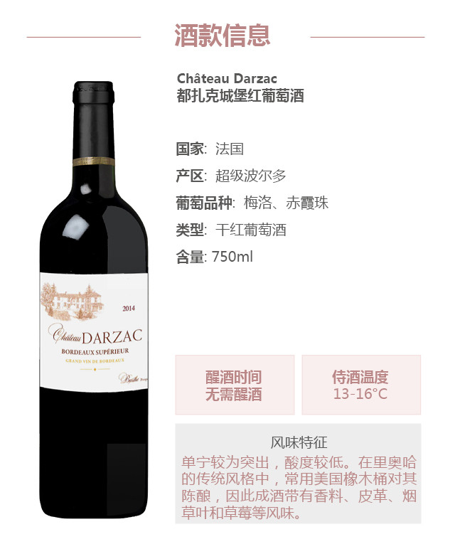 【整箱购买】都扎克城堡红葡萄酒 Darzac Rouge 750ml*6