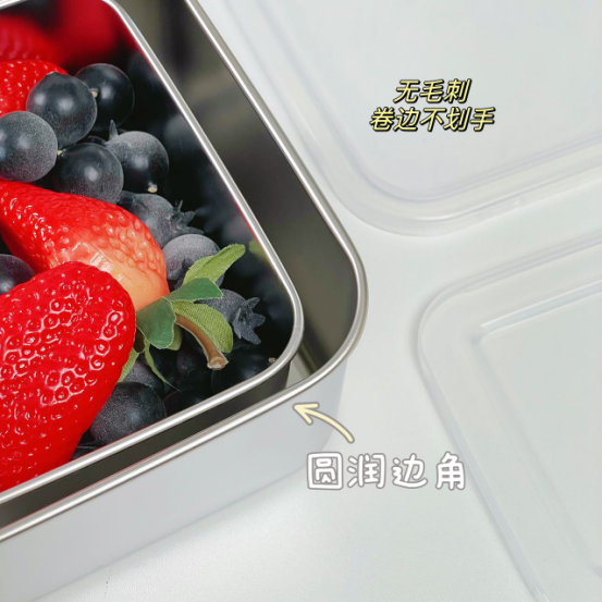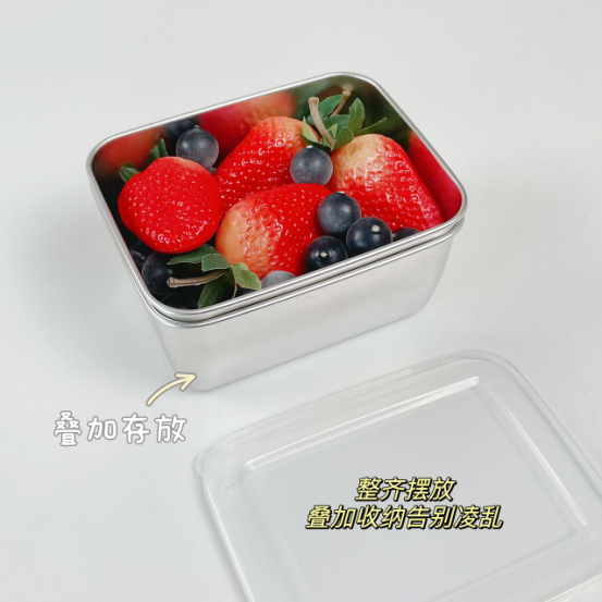 304不锈钢材质 可以安心反复使用 也很好清洗 可以拿来当保鲜盒装水果 随时拿出来吃 导冷快速均匀 可放进冰箱冷藏冷冻🧊 装一份水果🍒下午茶牛角包🥐 露营带出门也很赞