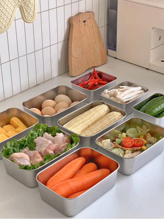 🔺PONEL304不锈钢方盒套装 比玻璃的轻便,比塑料的好清洗,还不怕留异味串味~ 食材急速锁鲜✔日常储存更安心🟢 不管是在家还是露营,使用频率都很高!
