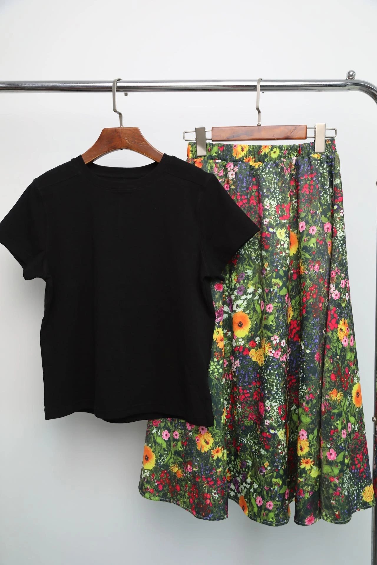 黑色天丝羊毛短袖/碎花半身裙(大货按实拍)