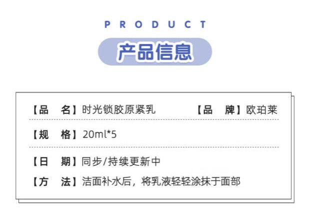【爆款超低价预售 急单慎拍】欧珀莱小样时光锁紧致塑颜柔肤乳液100ml(20ML*5个)滋润型