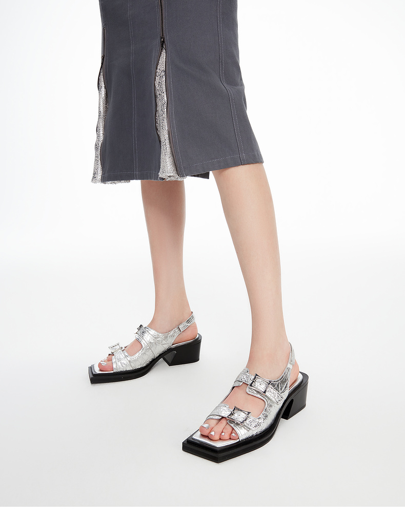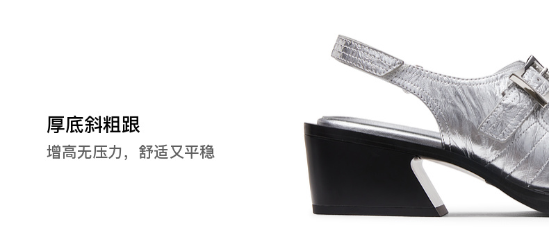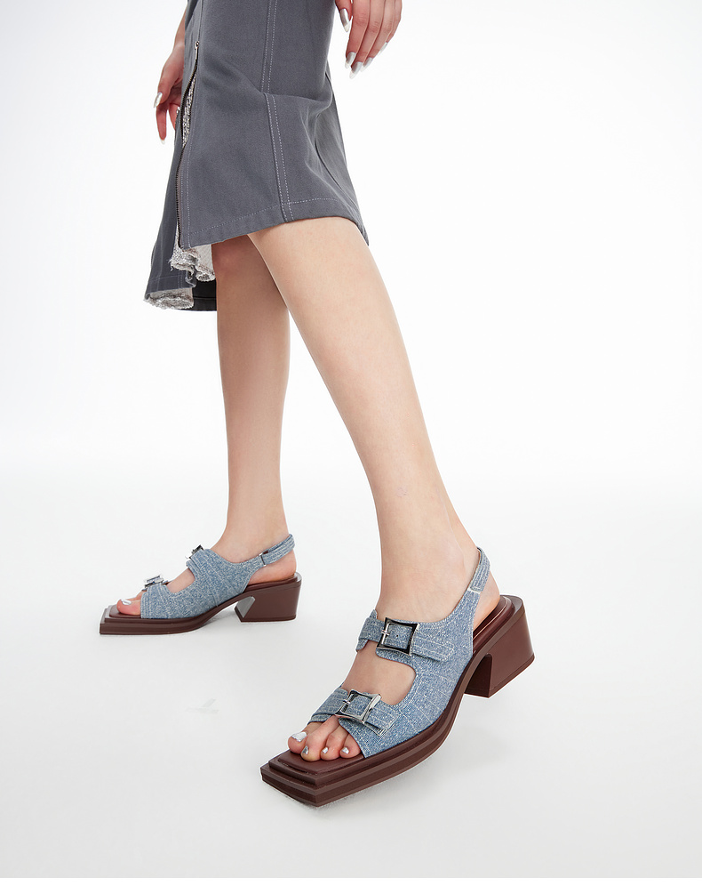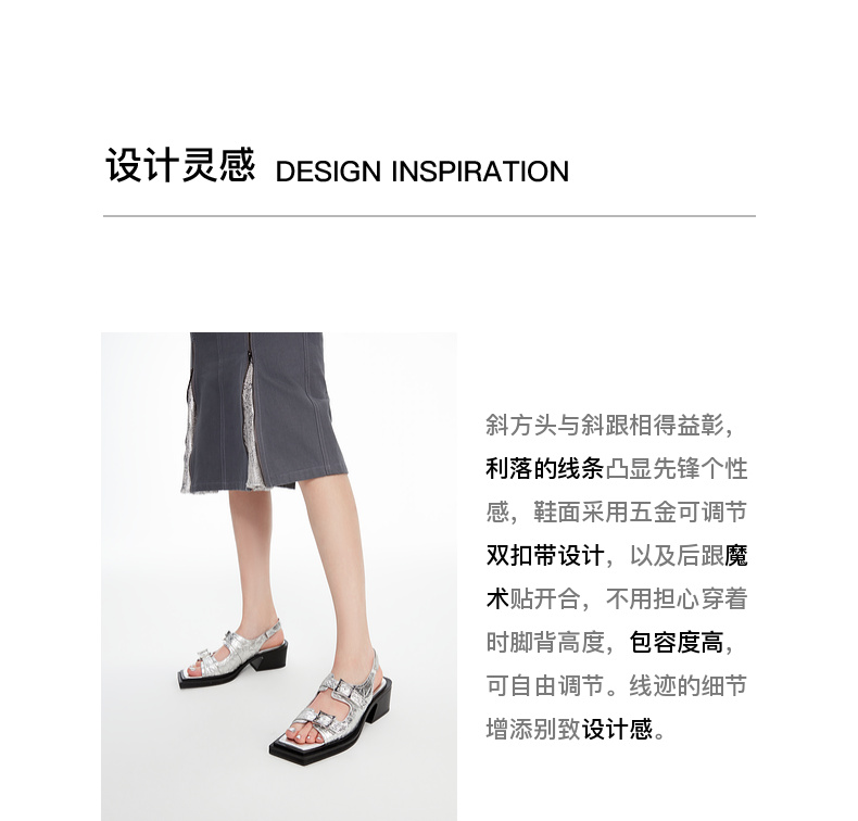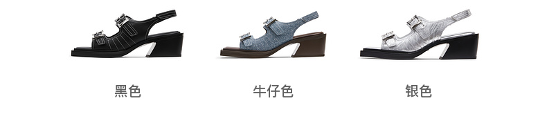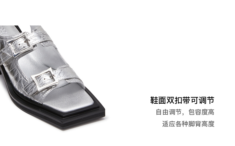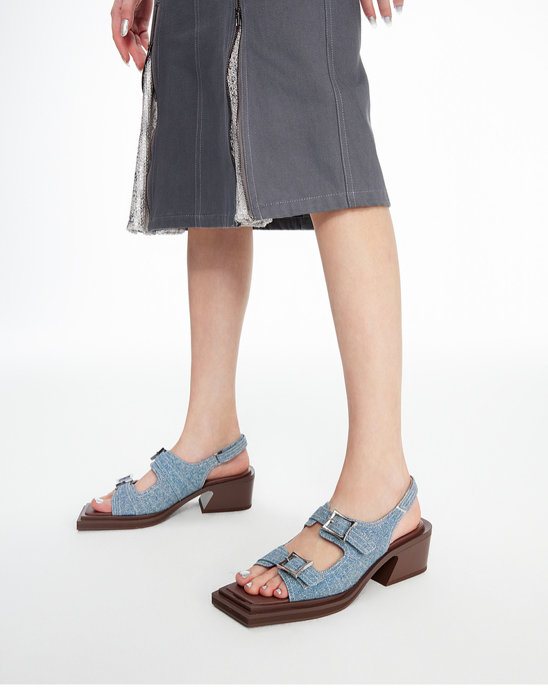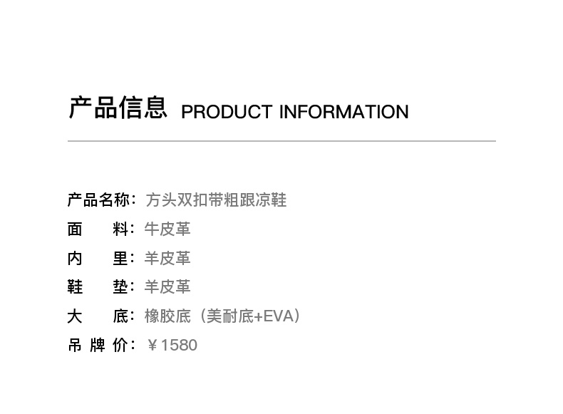 [捡漏价]lost in echo24年春夏新品设计师品牌方头线迹双扣带斜粗跟凉鞋