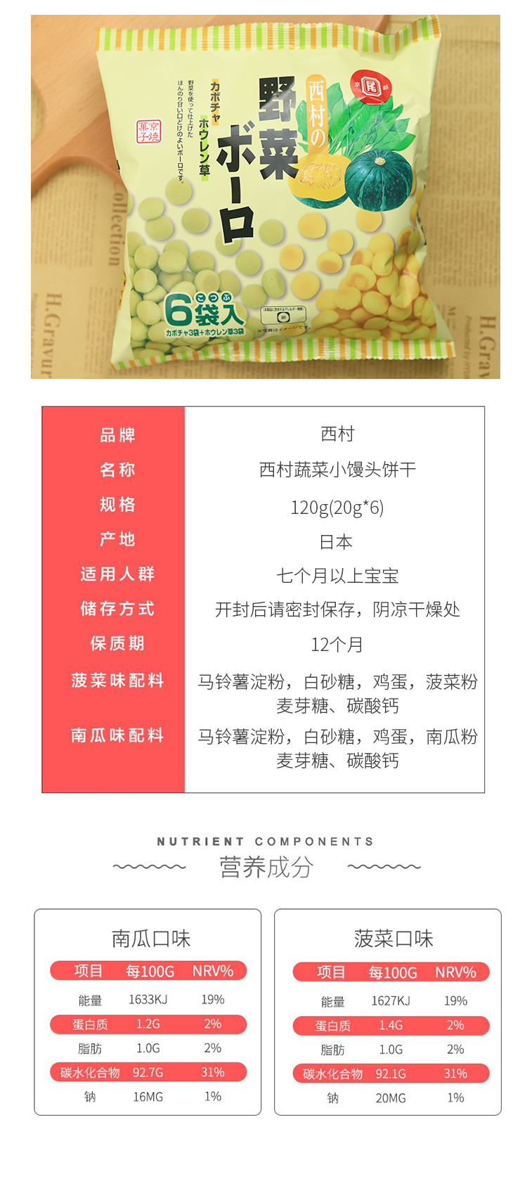 西村 蔬菜小馒头饼干(菠菜和南瓜)