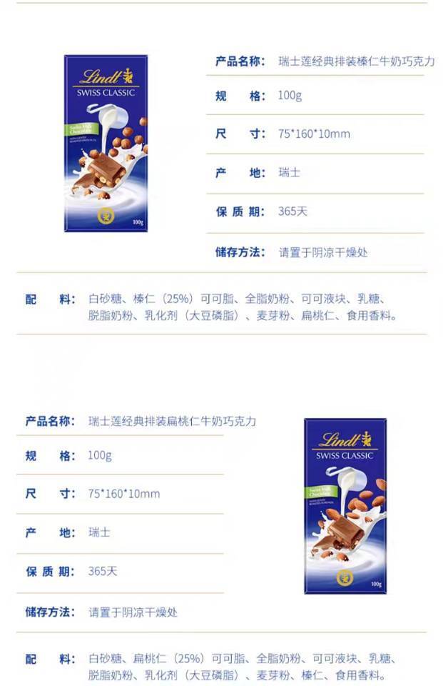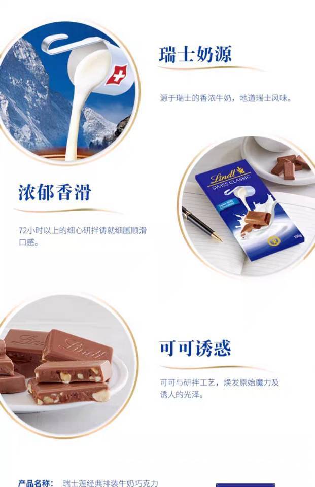 【产品名称】Lindt瑞士莲经典排装巧克力
