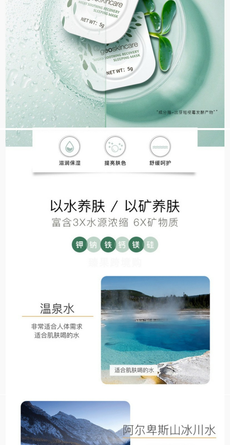 【YZ】geoskincare/纽西之谜乍弹睡眠面膜锁水保湿舒缓修护免洗面膜5g