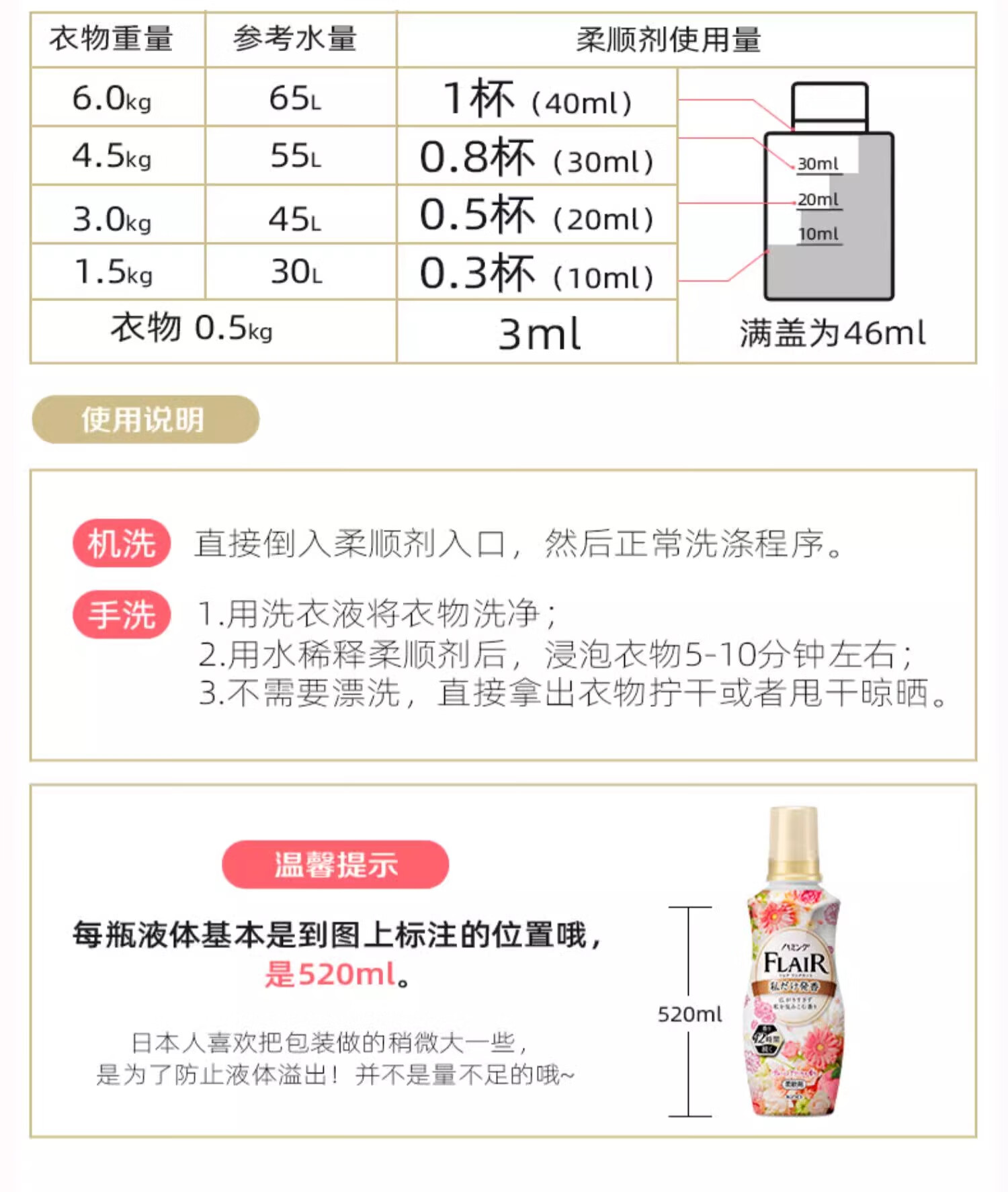 花王柔顺剂(温和花香)白粉520ml