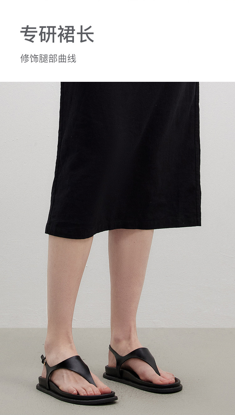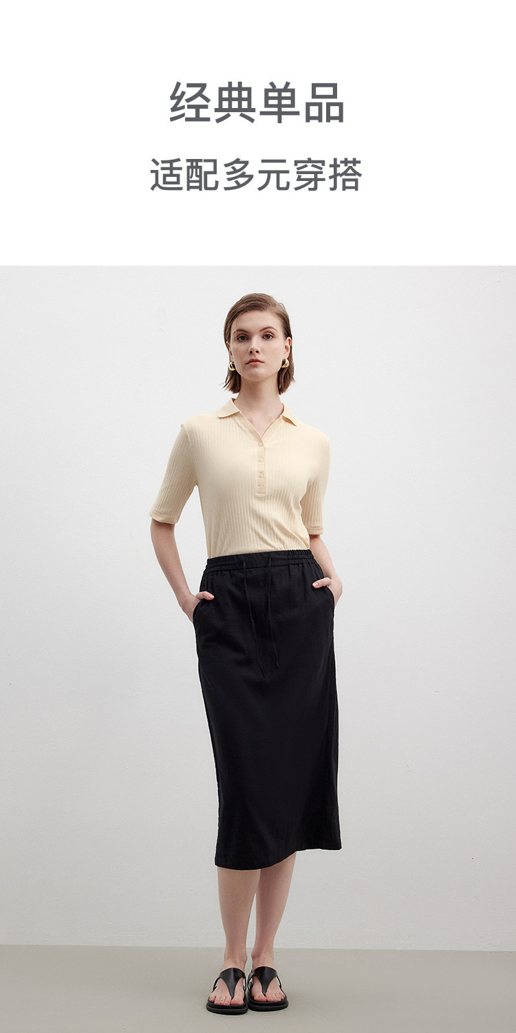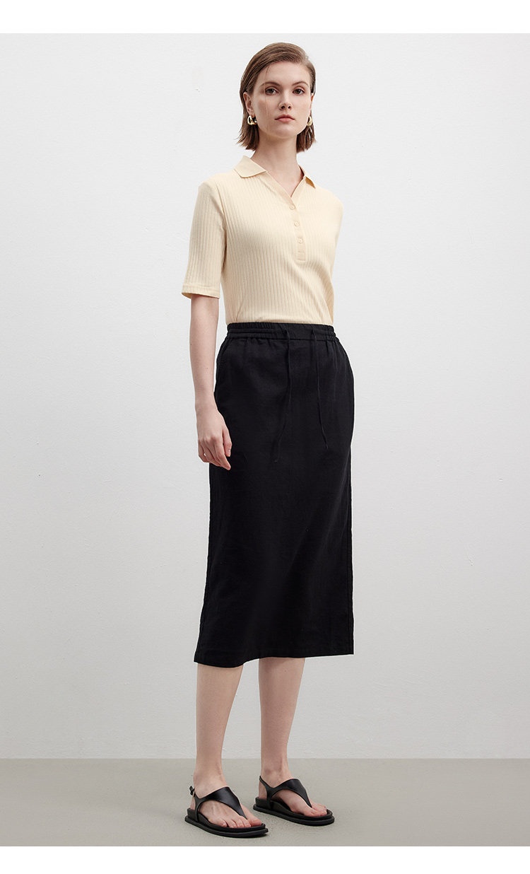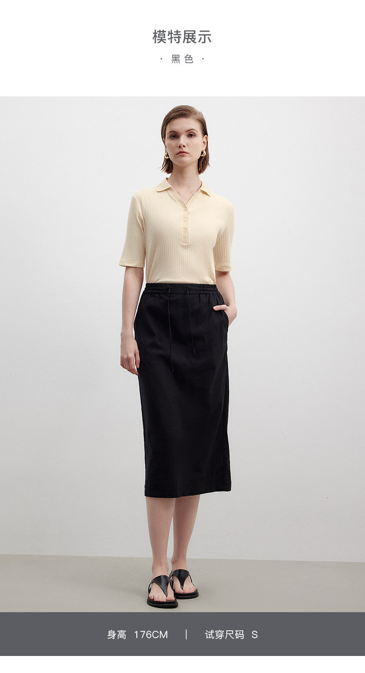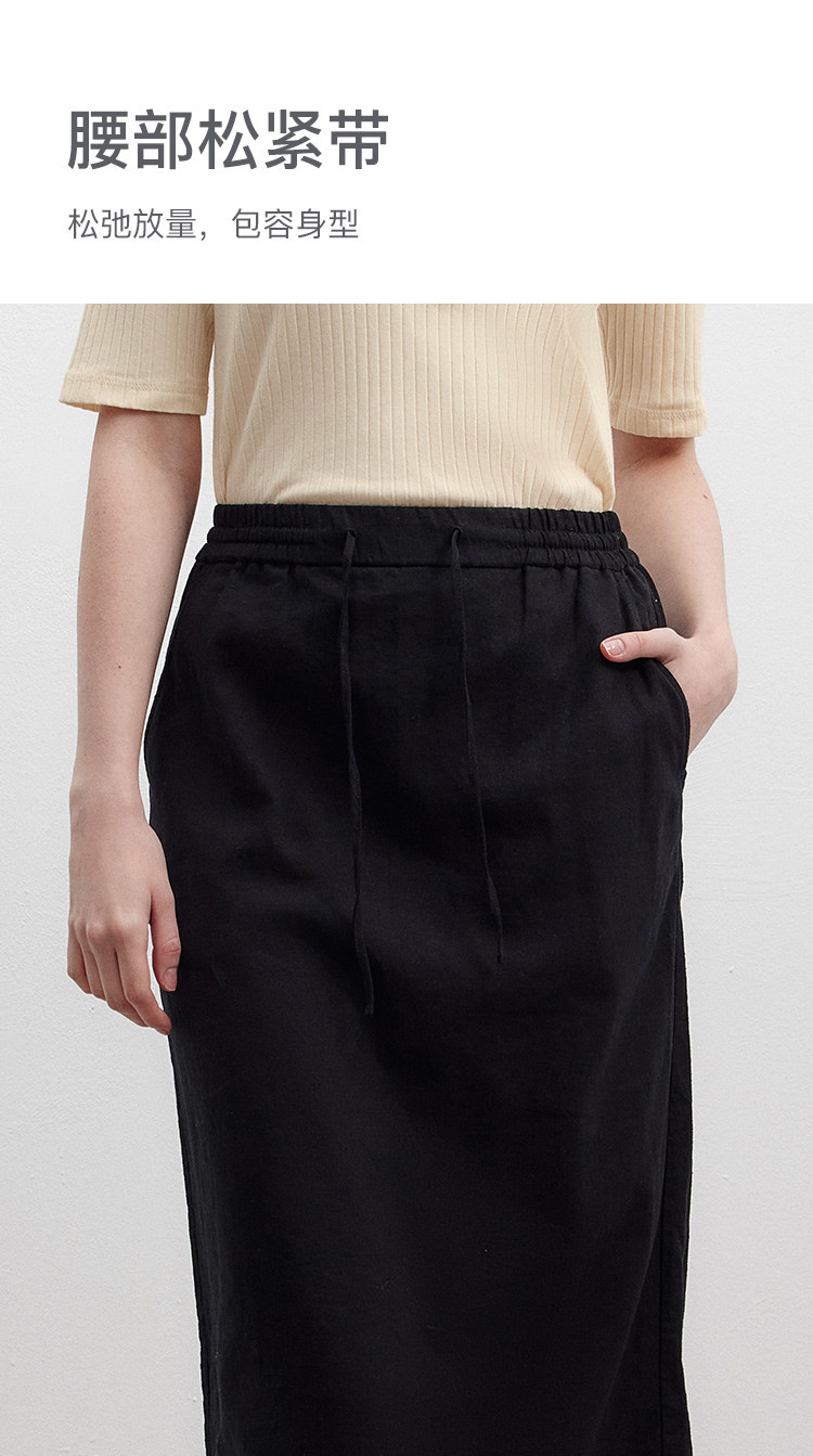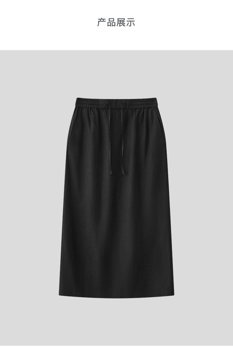 Marc O'Polo夏季新款好看时尚百搭黑色长款亚麻混纺半身裙女半裙