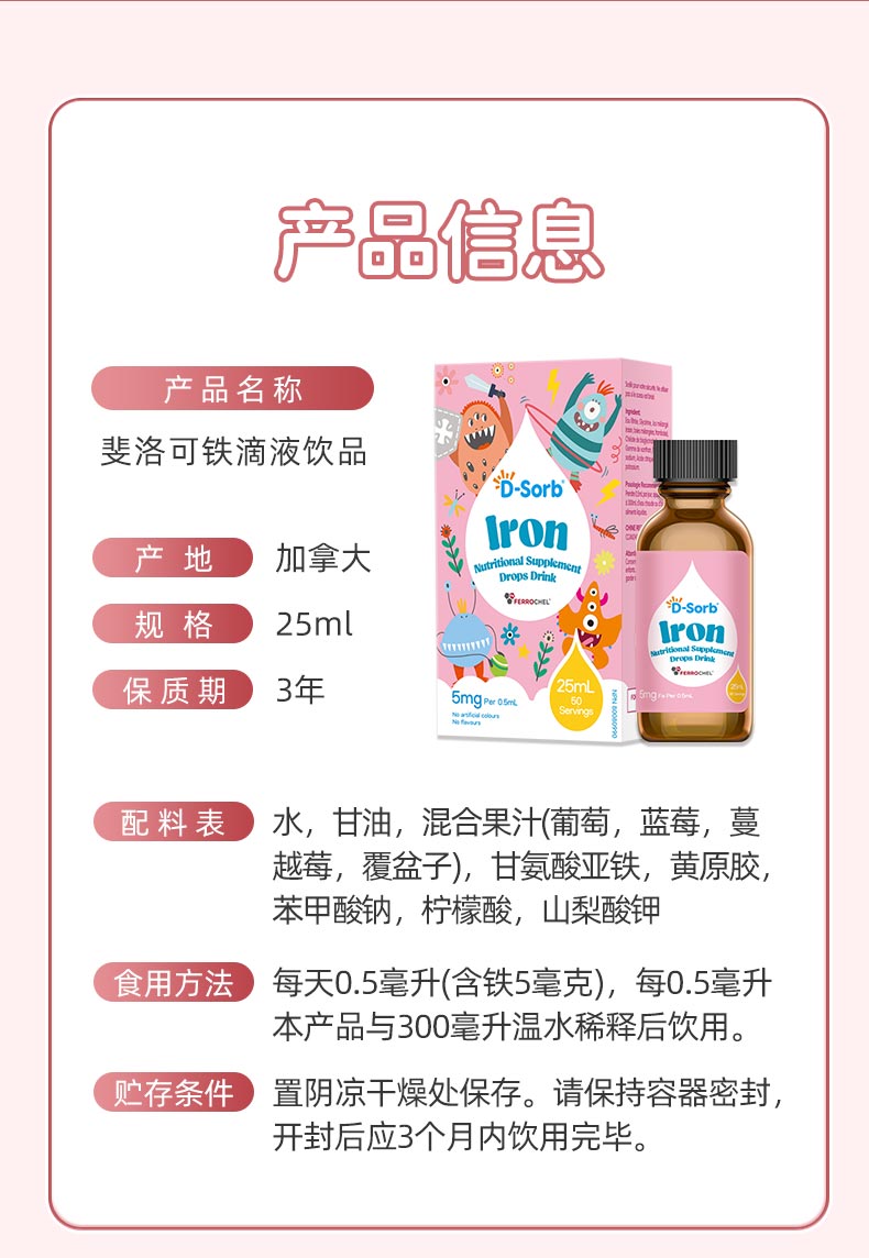 滴适宝(D-Sorb)铁剂儿童铁滴剂 第三代螯合加拿大原装进口铁滴剂