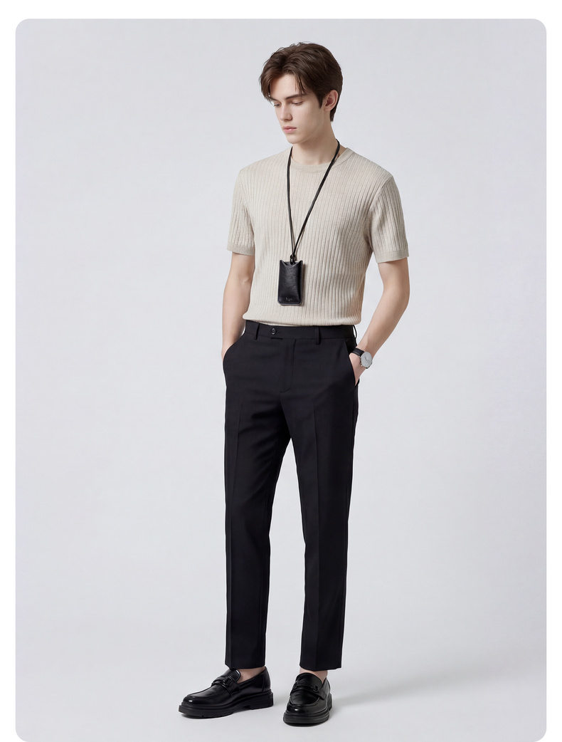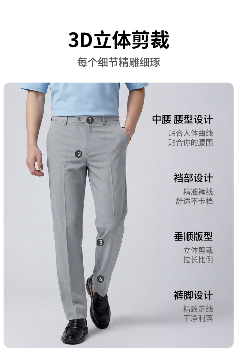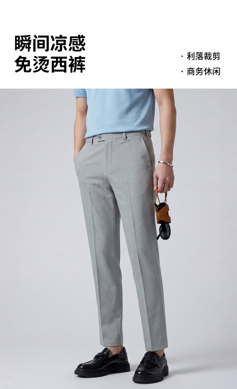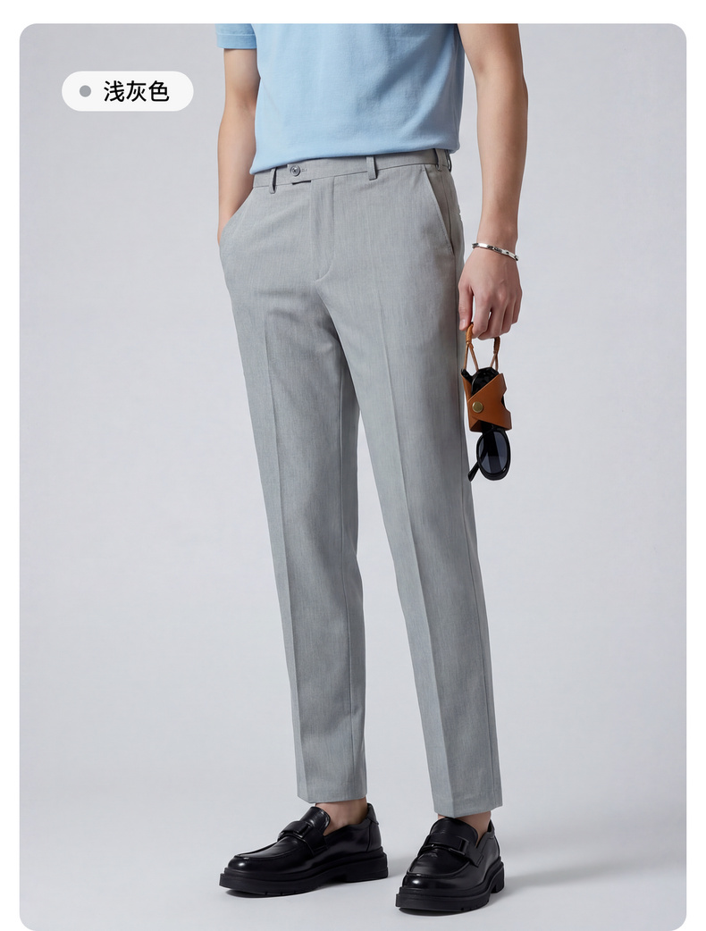 【瞬间凉感】圣得西高级垂坠感西裤2026男款春季修身商务绅士长裤
