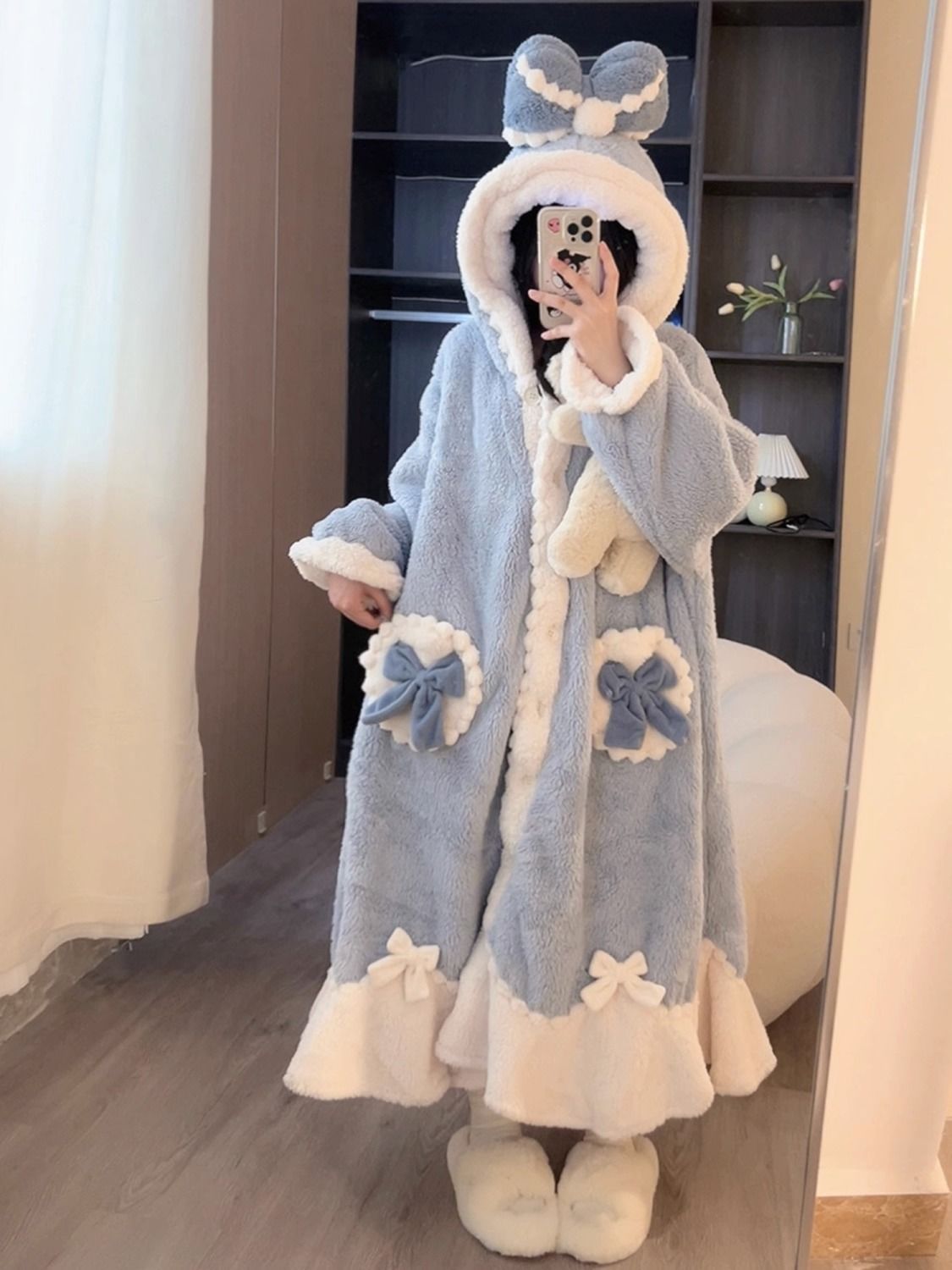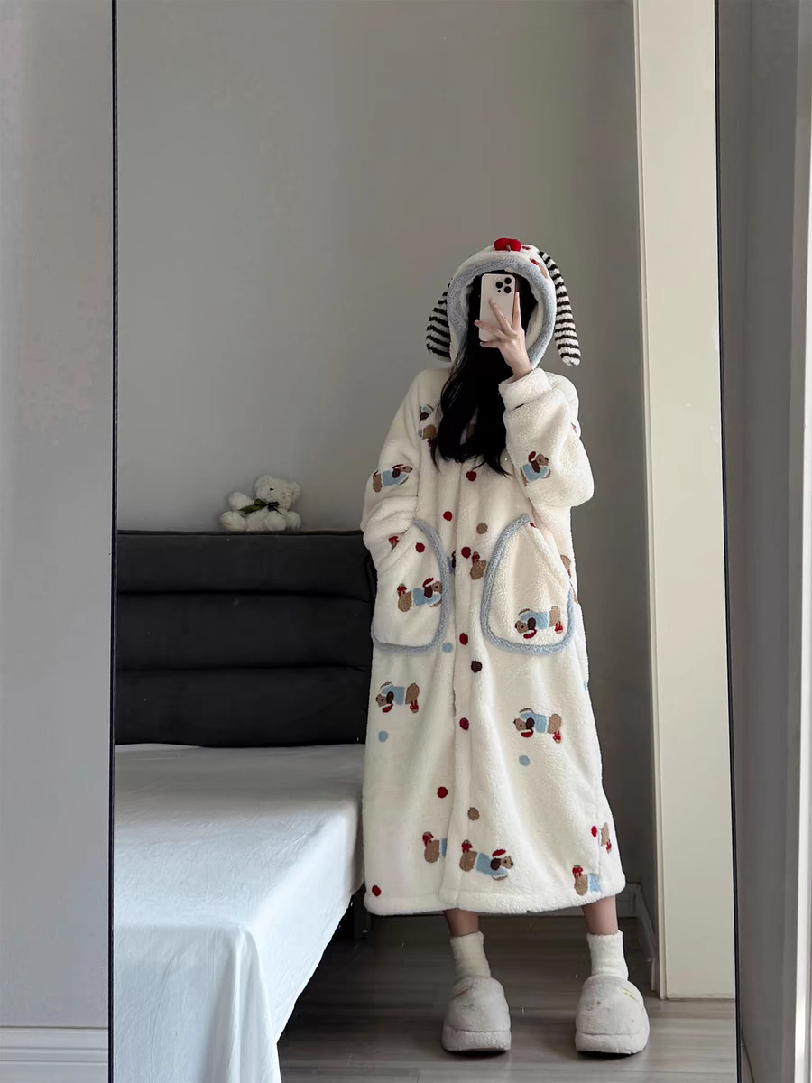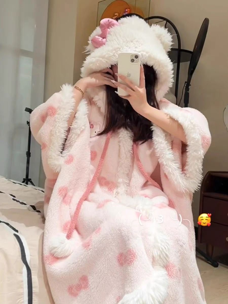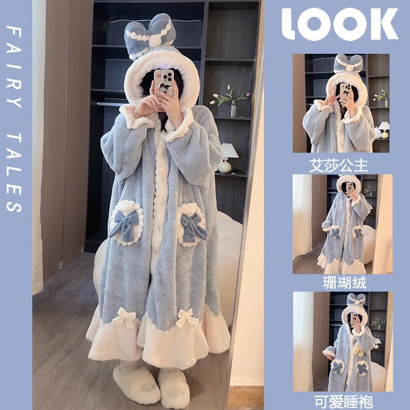 【YW】无忧购可爱卡通睡袍女秋冬季珊瑚绒加厚加绒睡衣睡裙家居服浴袍(截单后3-5天发货)