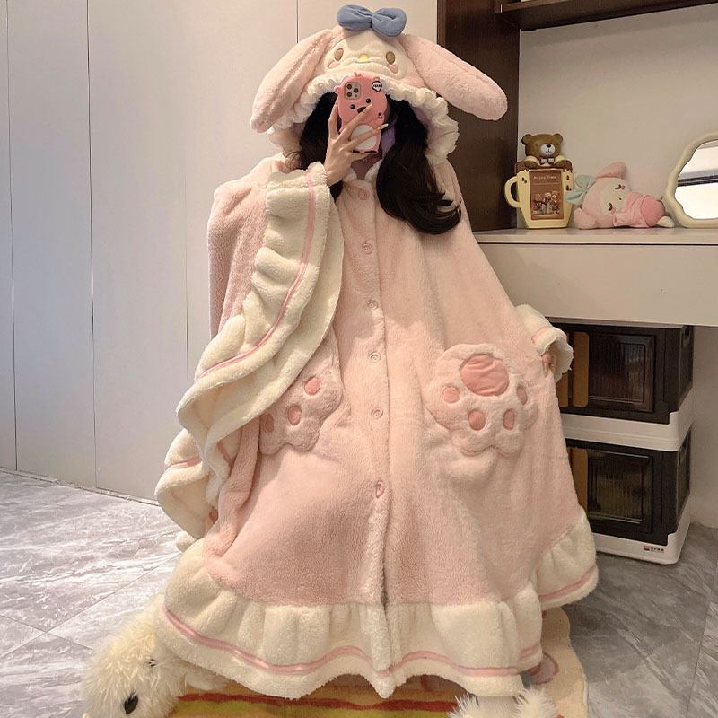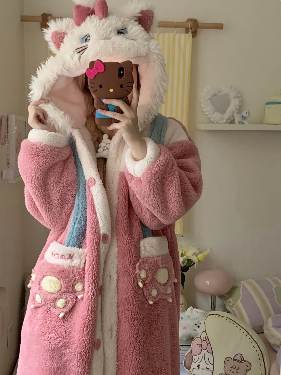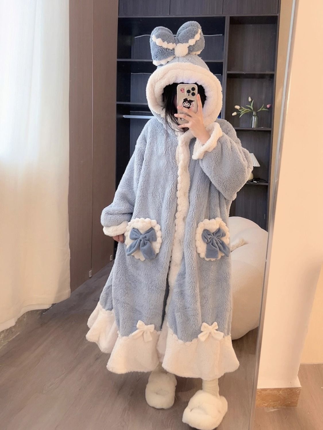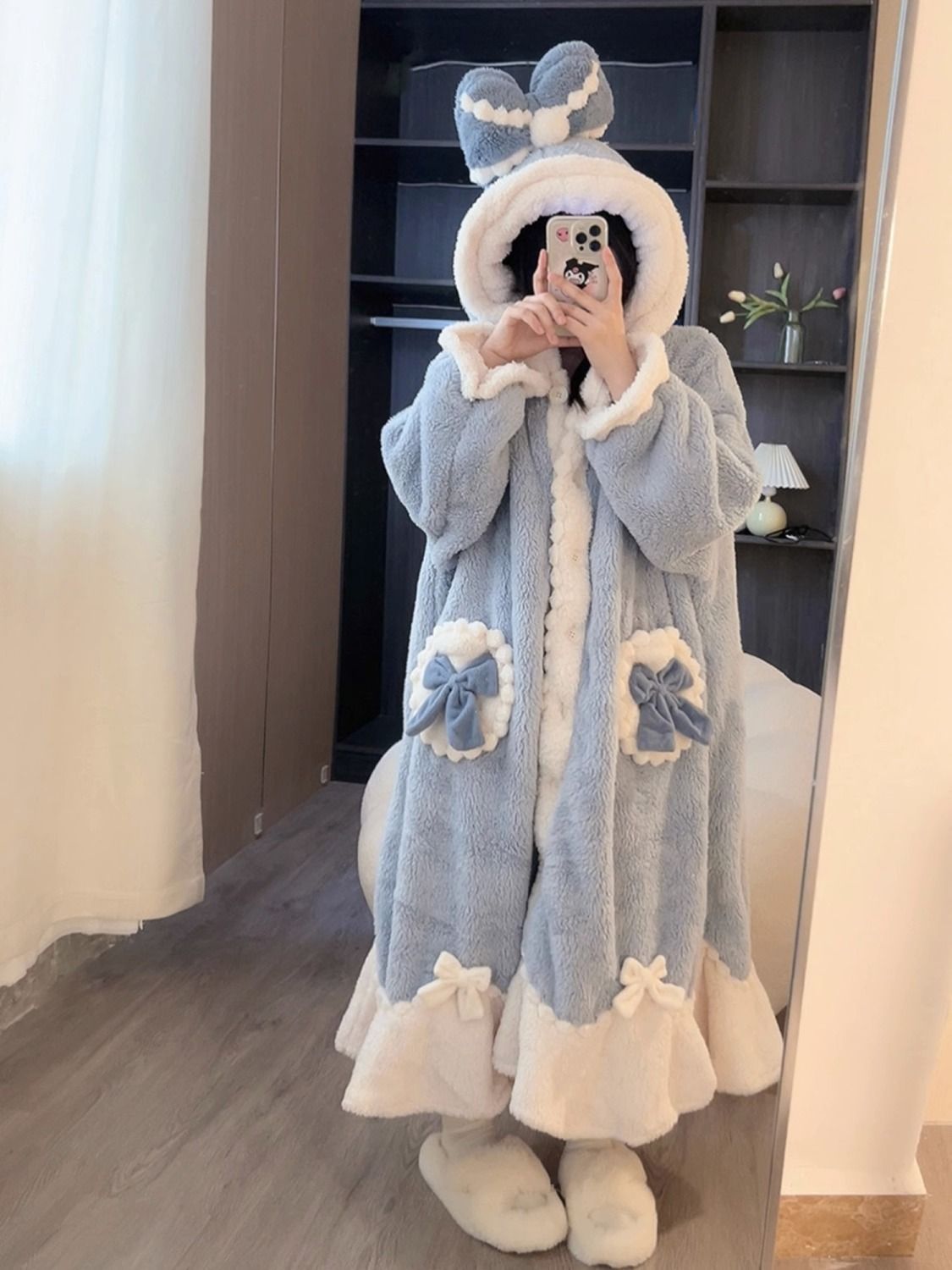 【YW】无忧购可爱卡通睡袍女秋冬季珊瑚绒加厚加绒睡衣睡裙家居服浴袍(截单后3-5天发货)