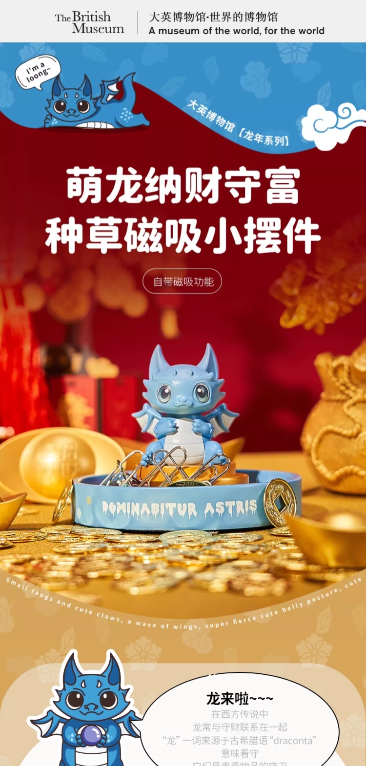 大英博物馆龙年系列 萌龙纳财守富种草磁吸桌面收纳小摆件