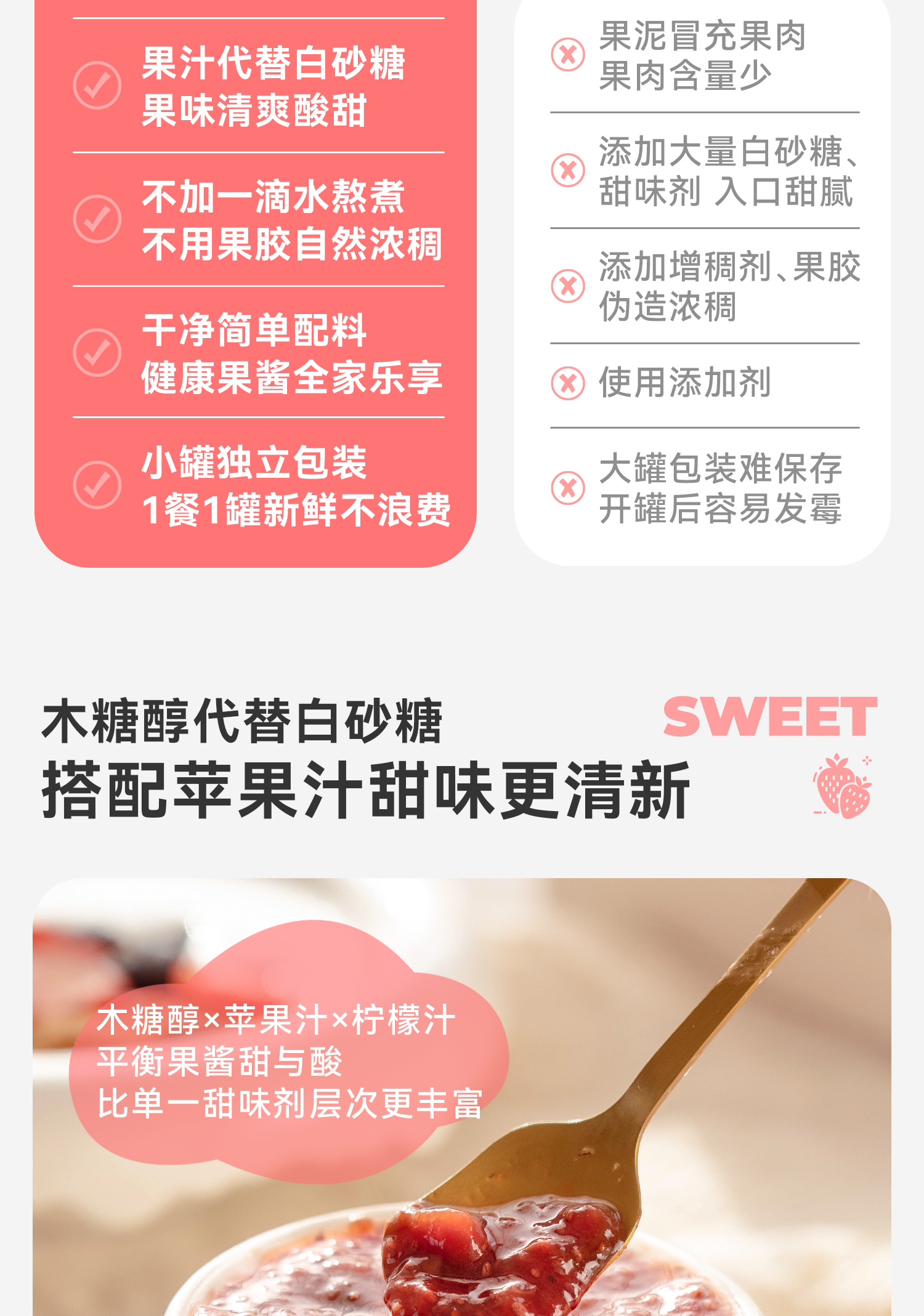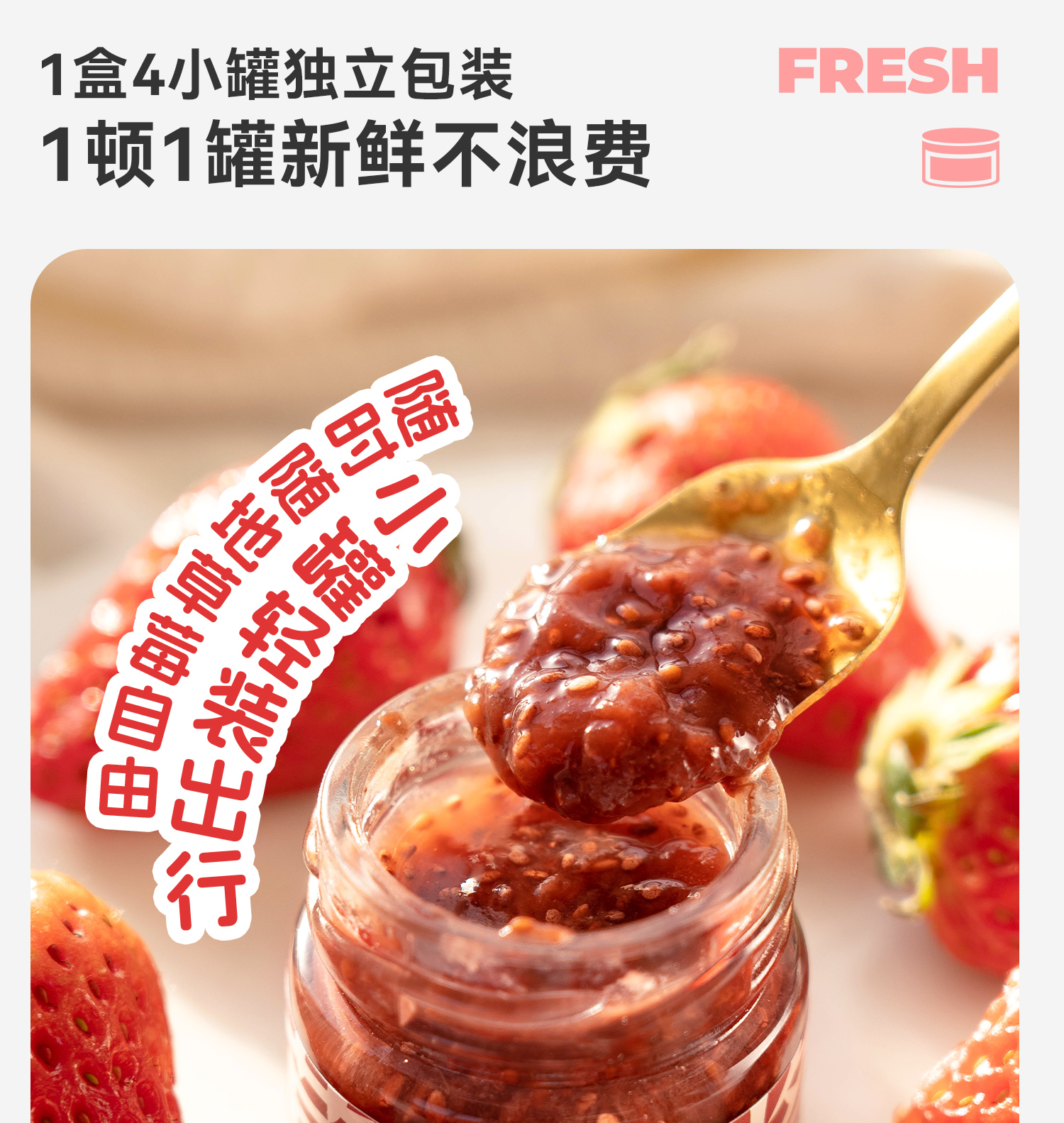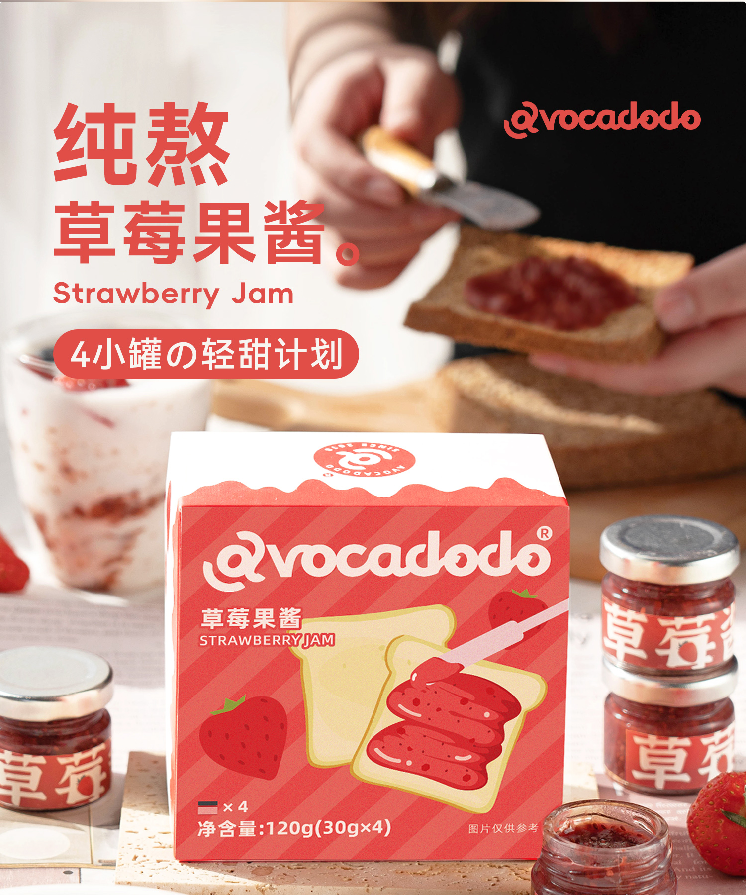 Avocadodo草莓酱果酱4小罐早餐果肉涂抹面包儿童即食烘焙未加蔗糖