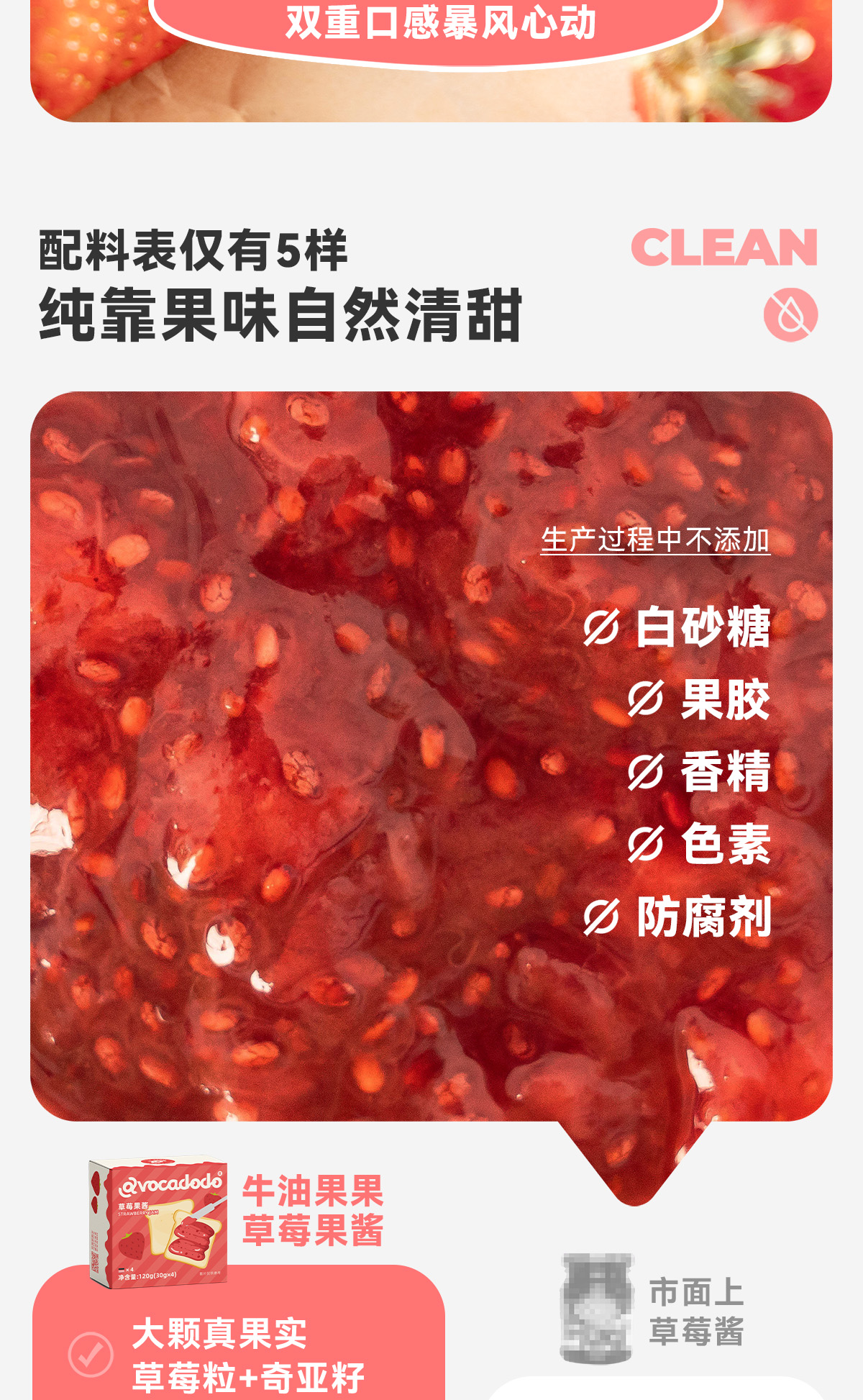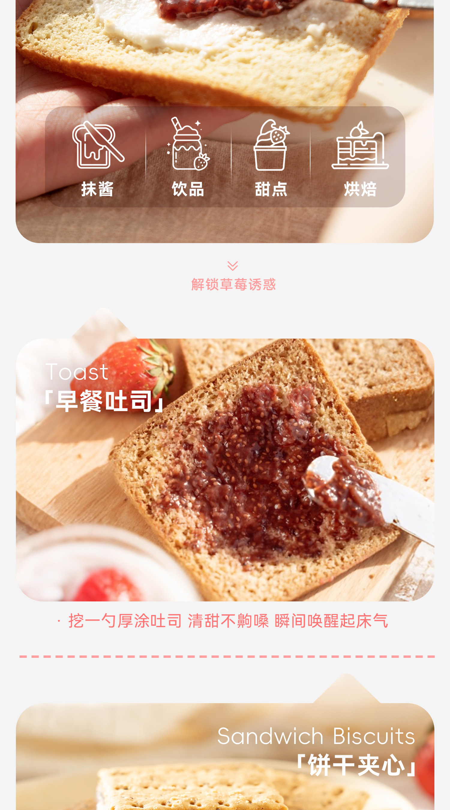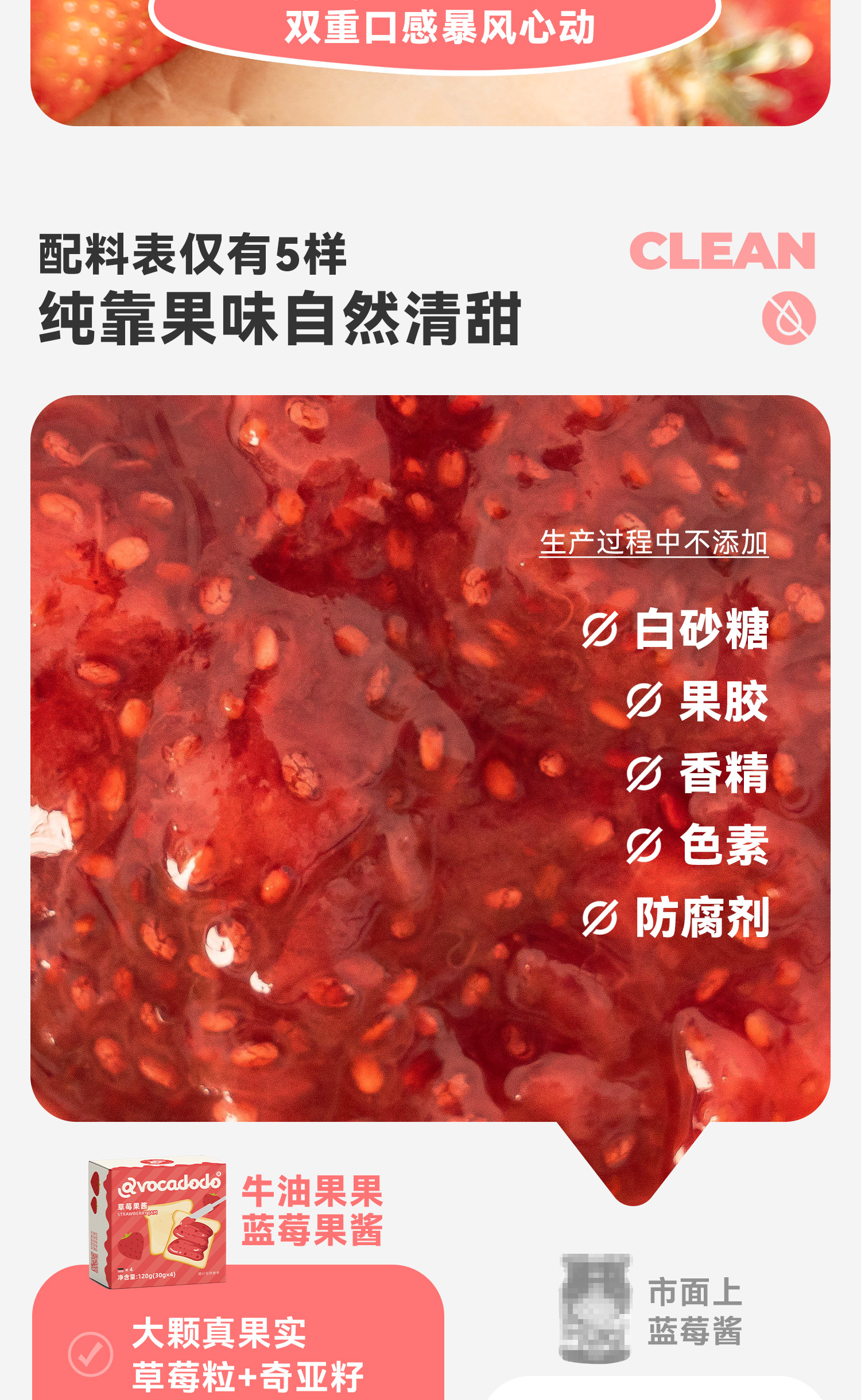 Avocadodo草莓酱果酱4小罐早餐果肉涂抹面包儿童即食烘焙未加蔗糖
