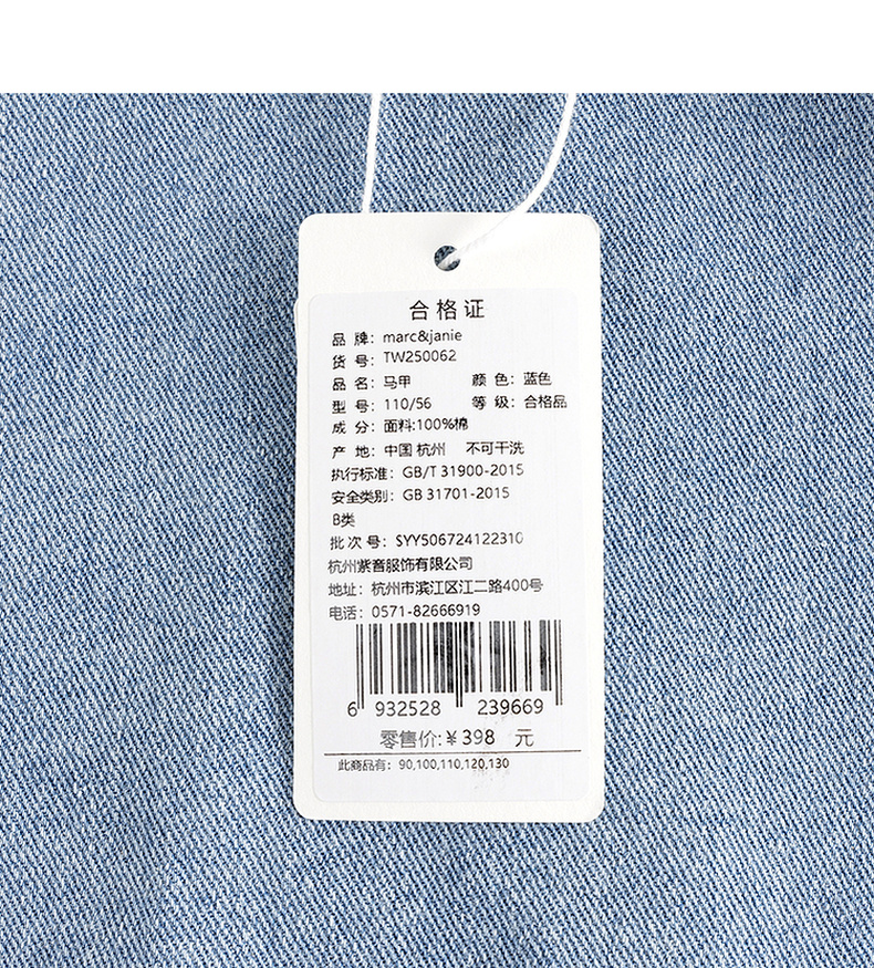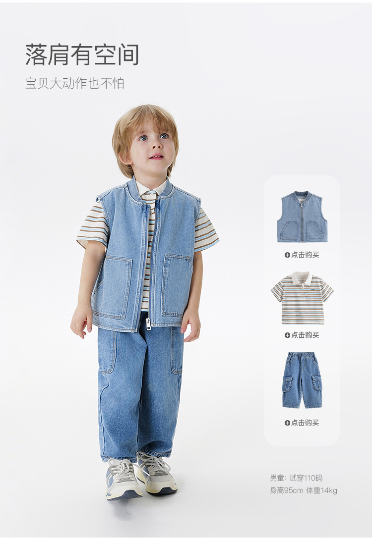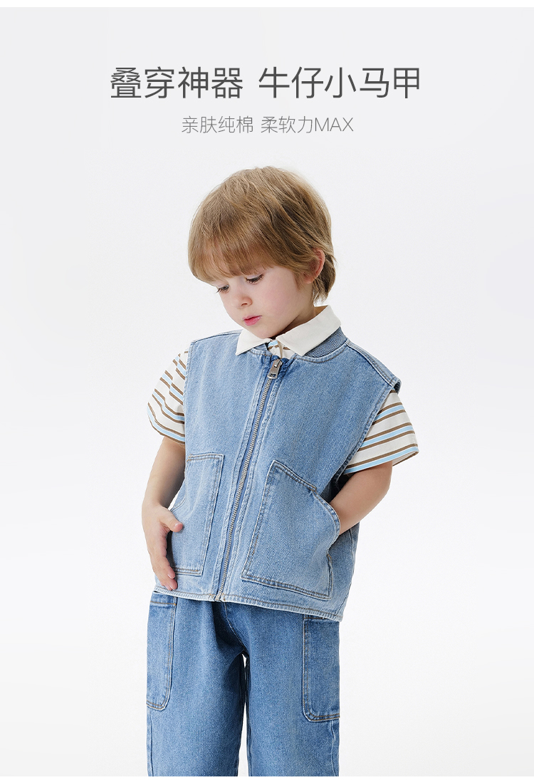 马克珍妮男童时尚纯棉牛仔小马甲2025年春装新款250062