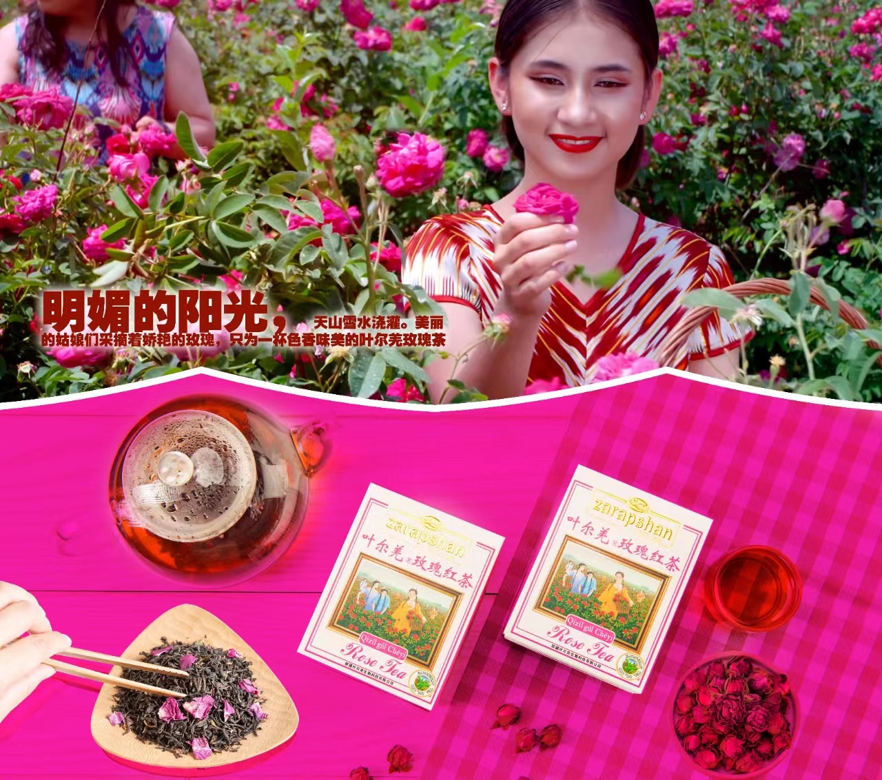 充足的阳光,天山雪水的浇灌,美丽的姑娘们,采摘着娇艳的玫瑰,只为一杯色香、味美的叶尔羌玫瑰茶!!!