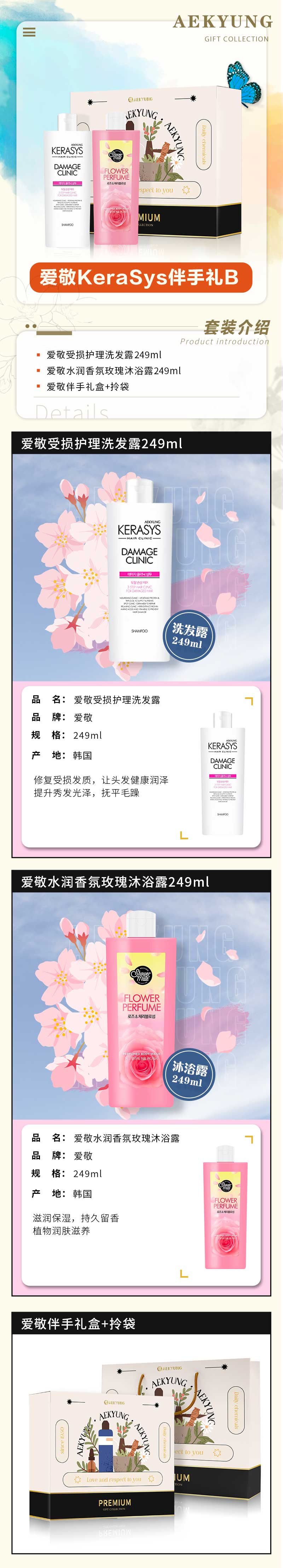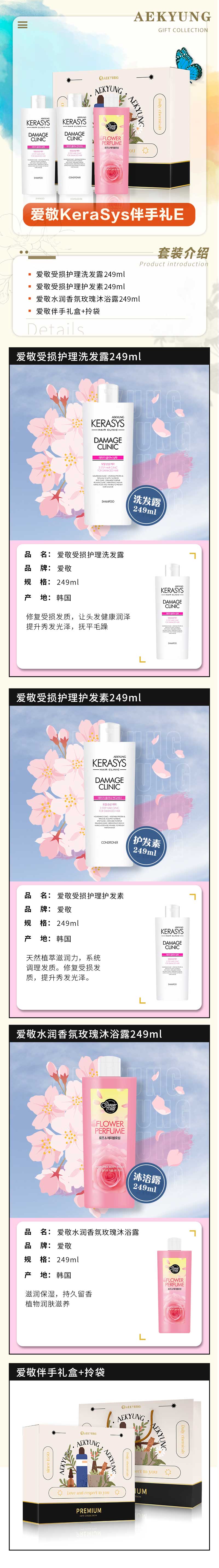 爱敬韩国进口改善修复干枯毛躁 滋养发质受损伴手礼系列洗护套装