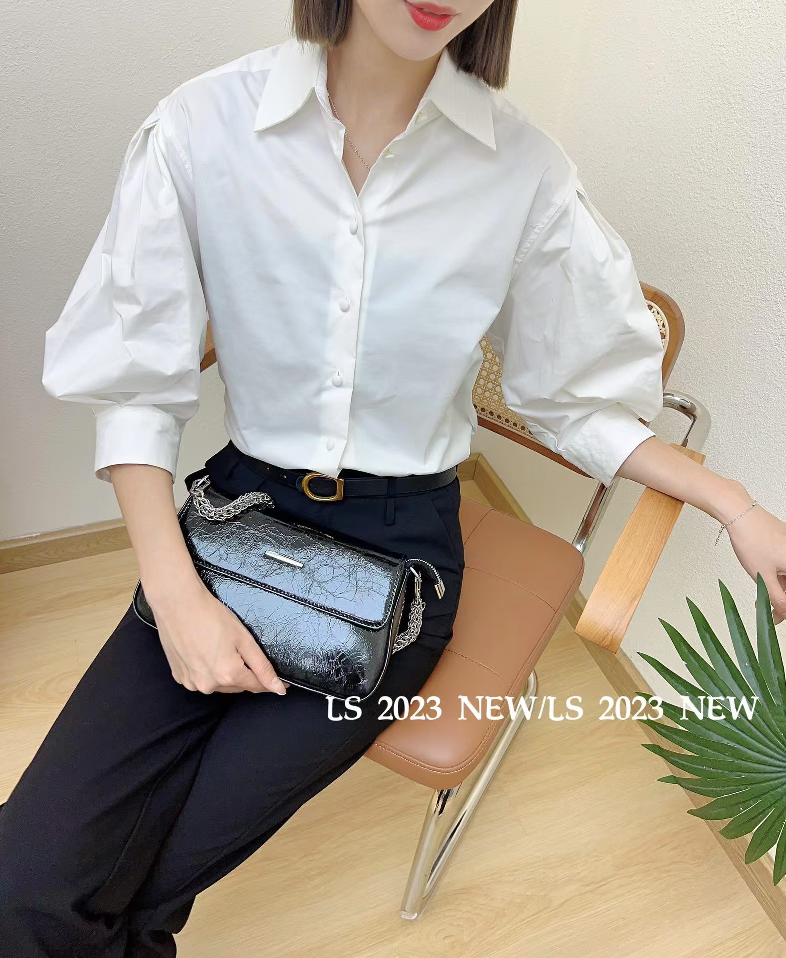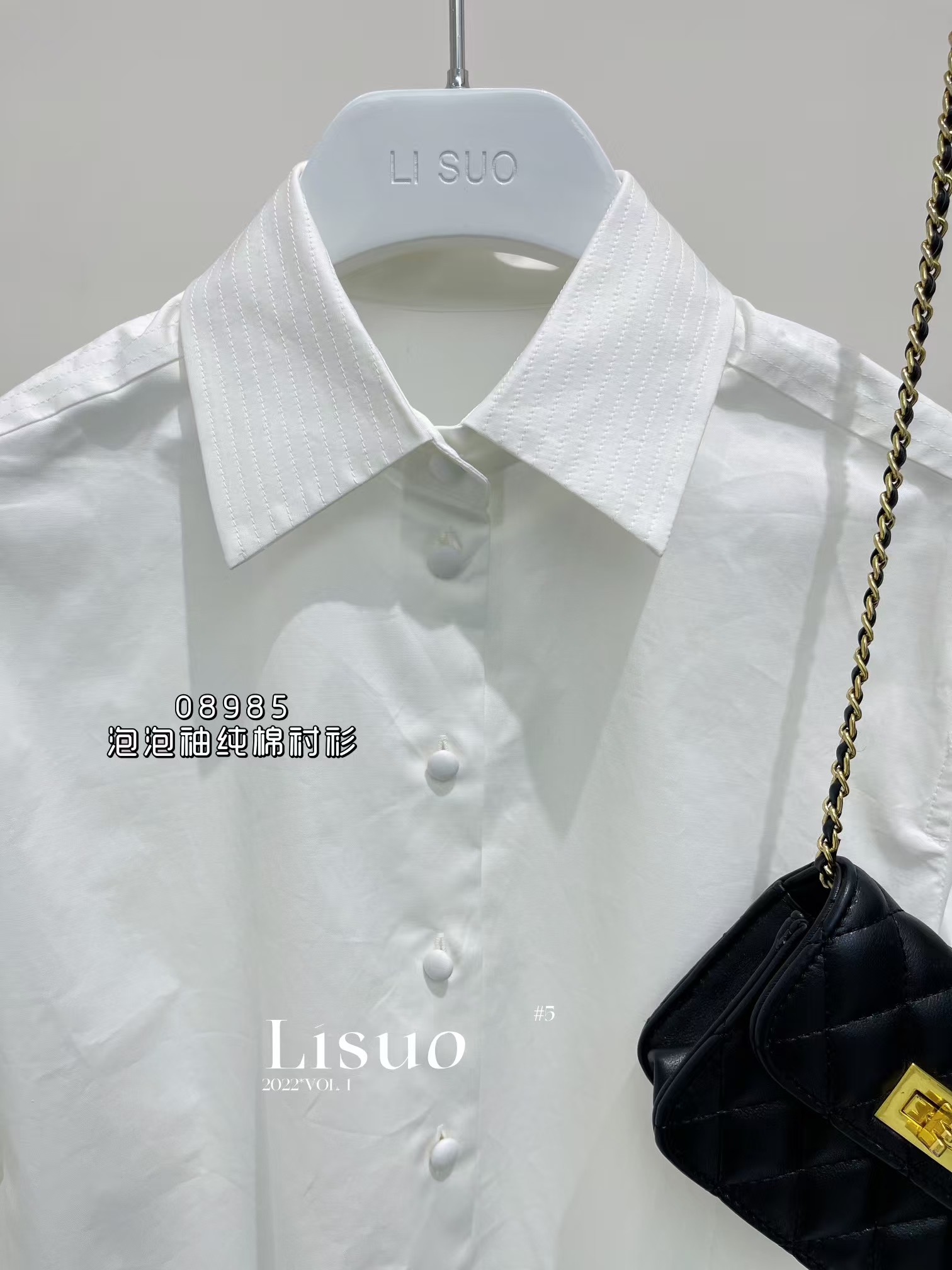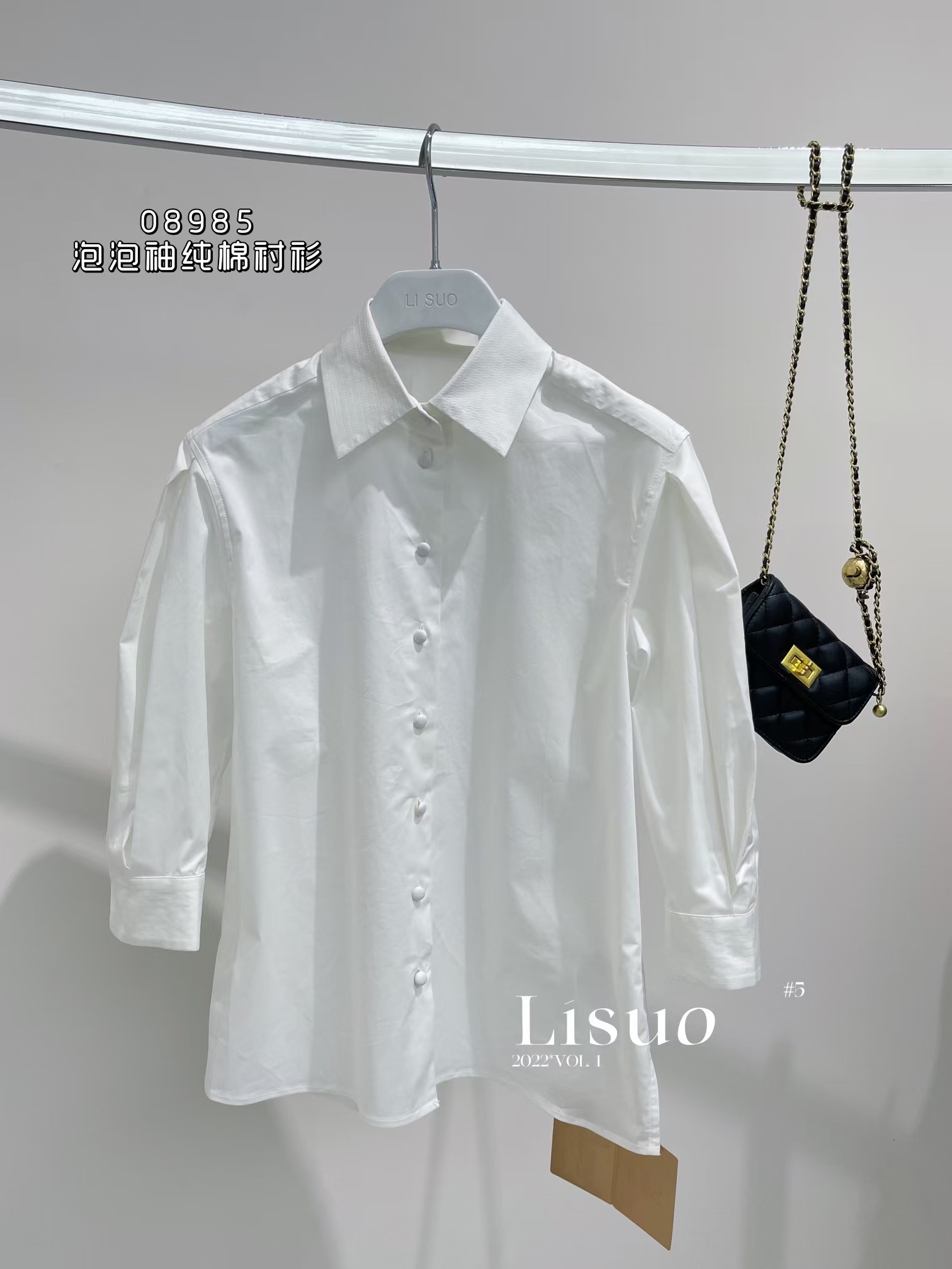 G08985#泡泡袖纯棉衬衫